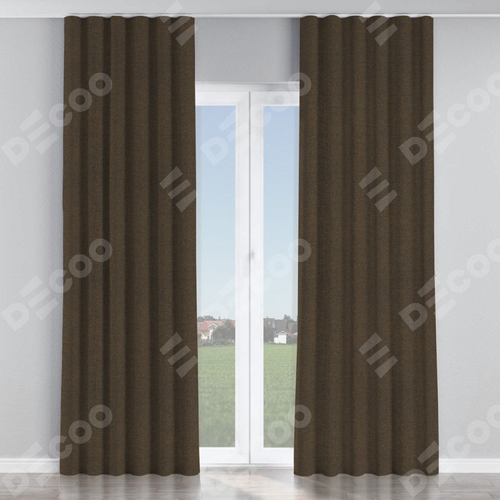 Комплект прямых штор, от производителя «Cortin», пошиты из ткани лён тёмно-коричневый, артикул ткани 53444. С изнаночной стороны в верхней части штор пристрачивается шторная лента с декоративными складками «Волна». Для создания элегантных складок прямые шторы шьются по стандарту с коэффициентом 1:2 (на 100 см. ширины проёма 200 см. ширины ткани).