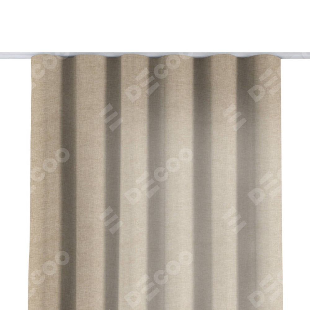 Комплект прямых штор, от производителя «Cortin», пошиты из ткани лён кашемир бежевый, артикул ткани 17206. С изнаночной стороны в верхней части штор пристрачивается шторная лента с декоративными складками «Волна». Для создания элегантных складок прямые шторы шьются по стандарту с коэффициентом 1:2 (на 100 см. ширины проёма 200 см. ширины ткани).