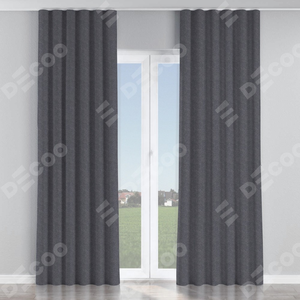 Комплект прямых штор, от производителя «Cortin», пошиты из ткани софт однотонный графит, артикул ткани 19316. С изнаночной стороны в верхней части штор пристрачивается шторная лента с декоративными складками «Волна». Для создания элегантных складок прямые шторы шьются по стандарту с коэффициентом 1:2 (на 100 см. ширины проёма 200 см. ширины ткани).