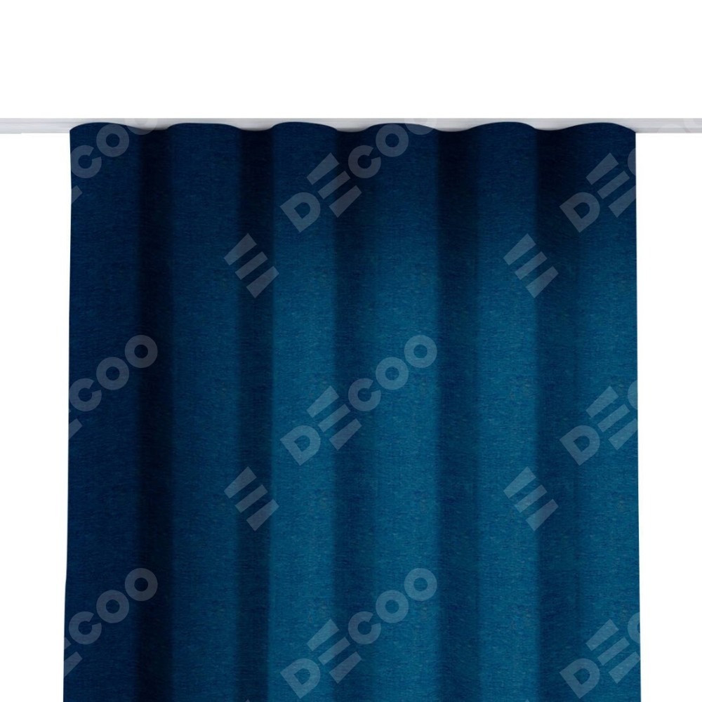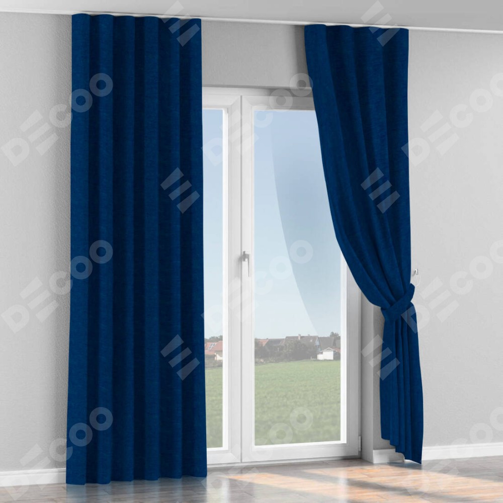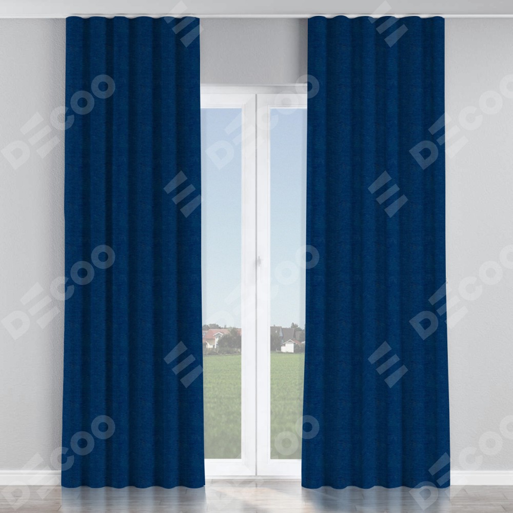 Комплект прямых штор, от производителя «Cortin», пошиты из ткани софт однотонный синий, артикул ткани 42937. С изнаночной стороны в верхней части штор пристрачивается шторная лента с декоративными складками «Волна». Для создания элегантных складок прямые шторы шьются по стандарту с коэффициентом 1:2 (на 100 см. ширины проёма 200 см. ширины ткани).