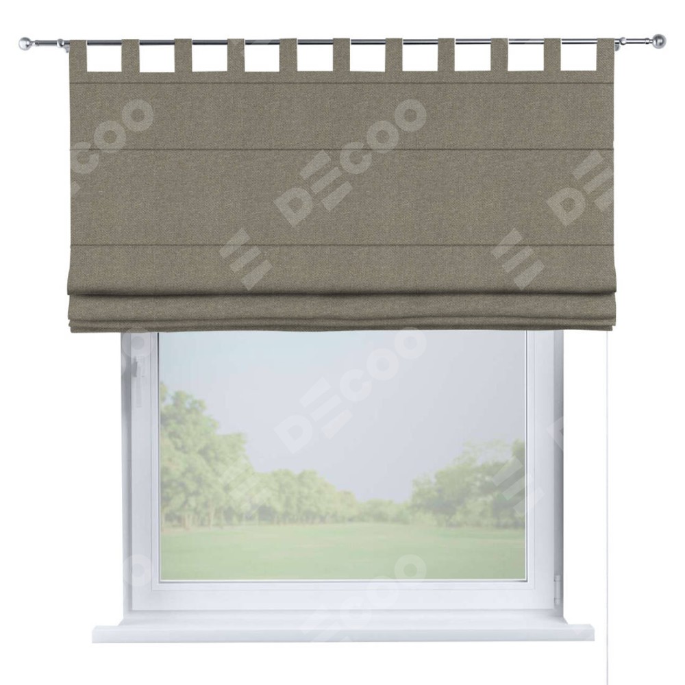 Римская штора производителя «Cortin», используется для проёма, пошита из ткани лён димаут серо-зелёный, артикул ткани 00003. Данная модель пошита на петлях, комплектуется на выбор круглым карнизом и подходит для монтажа на стену. Римская штора на петлях имеет простую систему регулировки высоты, отличительным преимуществом данной модели является простой способ монтажа. Достаточно повесить ее на трубу и штора готова!