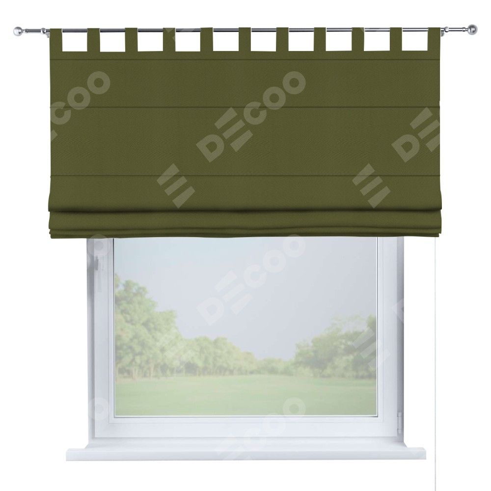 Римская штора производителя «Cortin», используется для проёма, пошита из ткани блэкаут однотонный зелёный, артикул ткани 81859. Данная модель пошита на петлях, комплектуется на выбор круглым карнизом и подходит для монтажа на стену. Римская штора на петлях имеет простую систему регулировки высоты, отличительным преимуществом данной модели является простой способ монтажа. Достаточно повесить ее на трубу и штора готова!