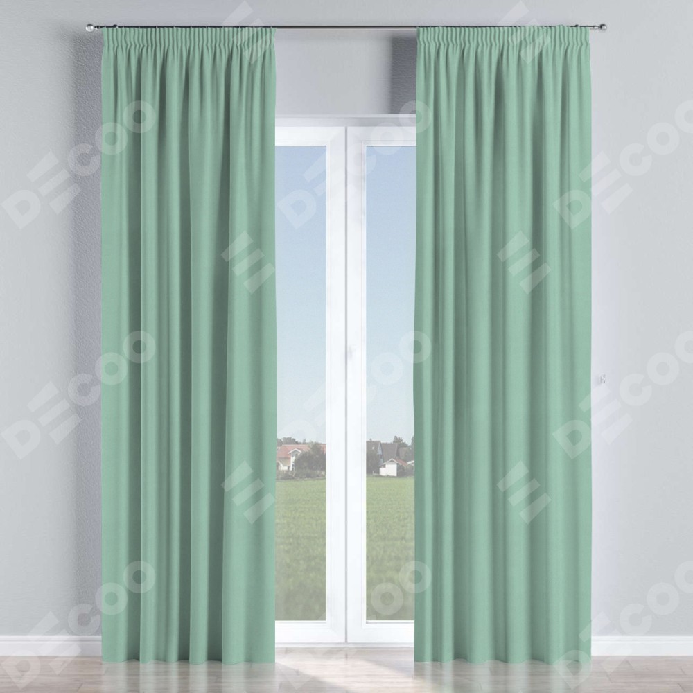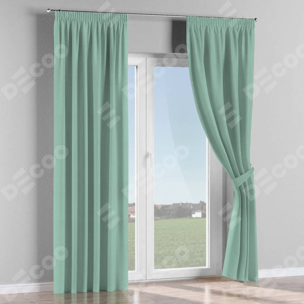 Комплект прямых штор, от производителя «Cortin», пошиты из ткани блэкаут однотонный ментоловый, артикул ткани 29584. С изнаночной стороны в верхней части штор пристрачивается шторная лента с декоративными складками «Карандаш». Для создания элегантных складок прямые шторы шьются по стандарту с коэффициентом 1:2 (на 100 см. ширины проёма 200 см. ширины ткани).