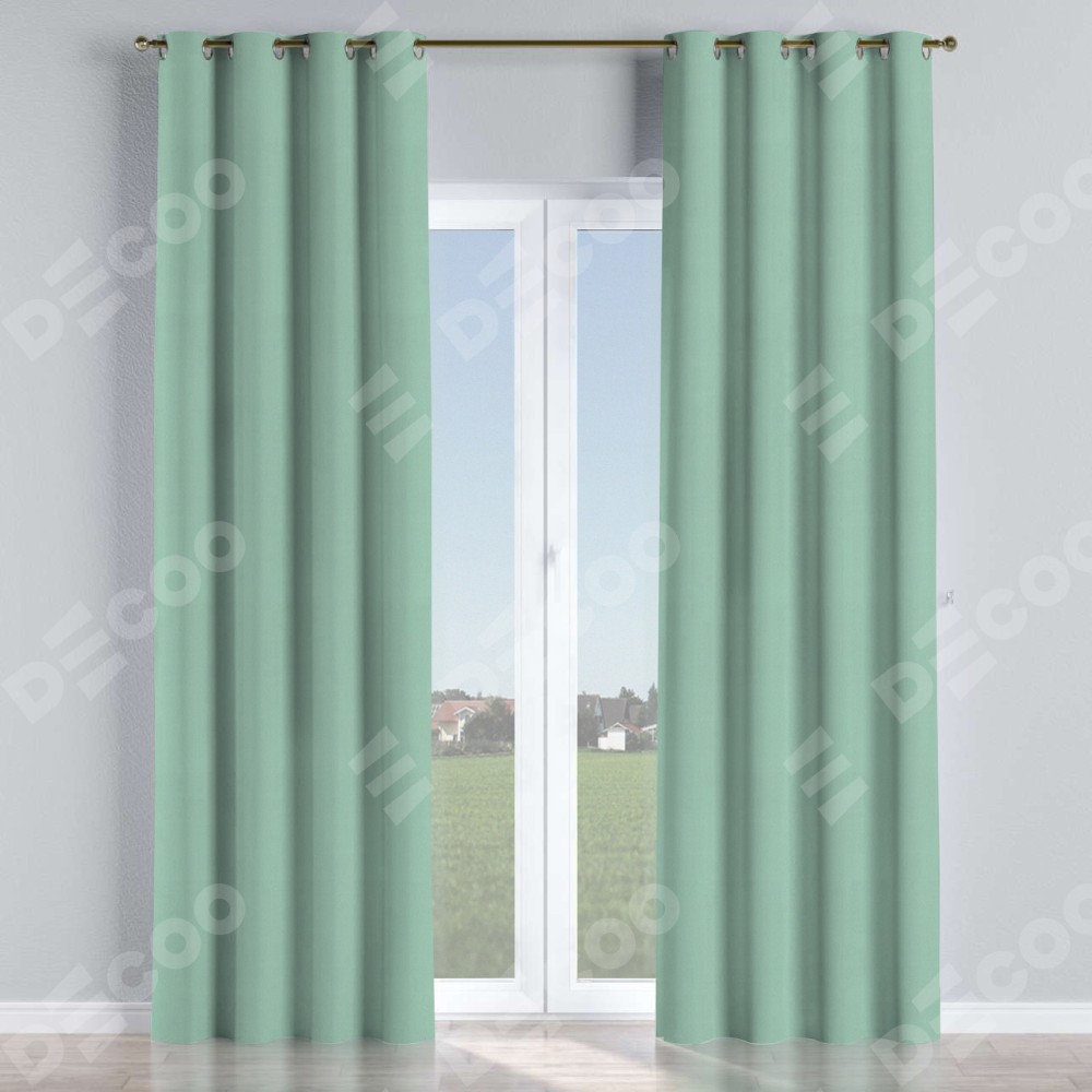 Комплект прямых штор, от производителя «Cortin», пошиты из ткани блэкаут однотонный ментоловый, артикул ткани 29584. Данная модель пошита на люверсах, комплектуется на выбор круглым карнизом и подходит для монтажа на стену или потолок. Прямые шторы на люверсах шьются по стандарту с коэффициентом 1/2 (на 100 см. ширины проёма 200 см. ширины ткани), отличительным преимуществом данной модели является простой способ монтажа. Достаточно повесить ее на трубу и штора готова!