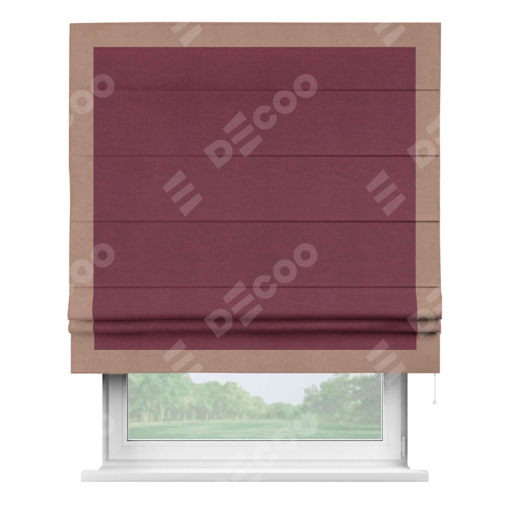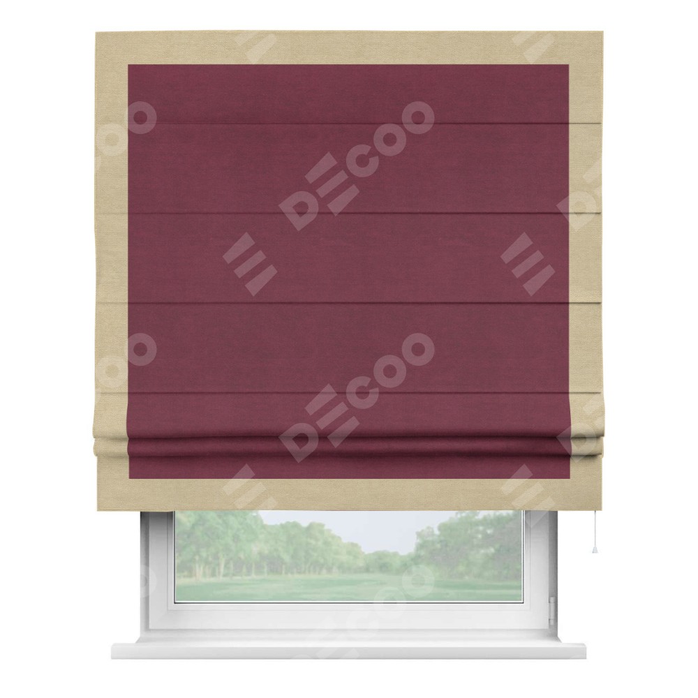 Римская штора «Кортин» с кантом Чесс, для проема, ткань вельвет бордовый