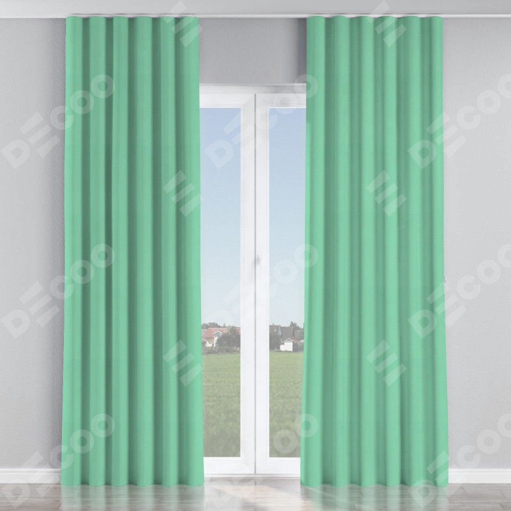Комплект прямых штор, от производителя «Cortin», пошиты из ткани pipa блэкаут бирюза, артикул ткани 81852. С изнаночной стороны в верхней части штор пристрачивается шторная лента с декоративными складками «Волна». Для создания элегантных складок прямые шторы шьются по стандарту с коэффициентом 1:2 (на 100 см. ширины проёма 200 см. ширины ткани).