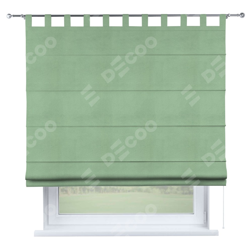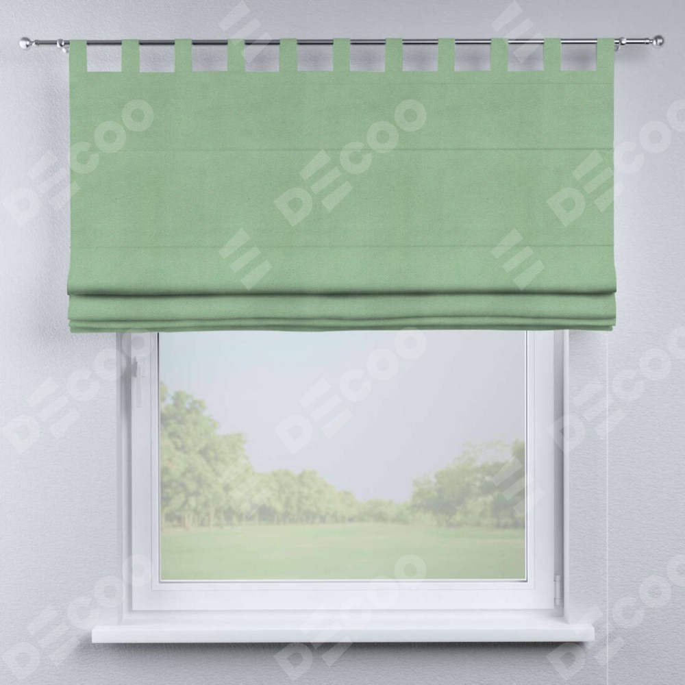 Римская штора производителя «Cortin», используется для проёма, пошита из ткани бархат оливковый, артикул ткани 18746. Данная модель пошита на петлях, комплектуется на выбор круглым карнизом и подходит для монтажа на стену. Римская штора на петлях имеет простую систему регулировки высоты, отличительным преимуществом данной модели является простой способ монтажа. Достаточно повесить ее на трубу и штора готова!