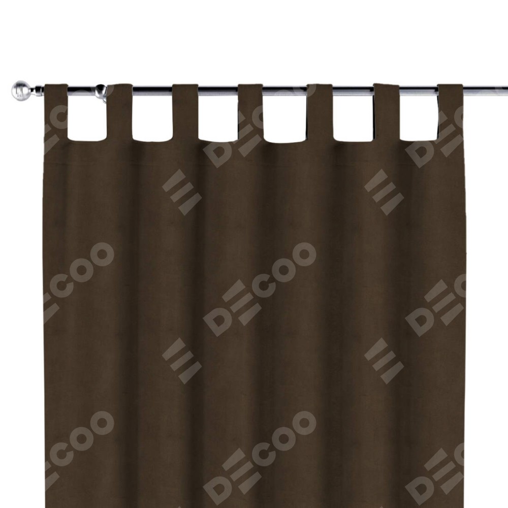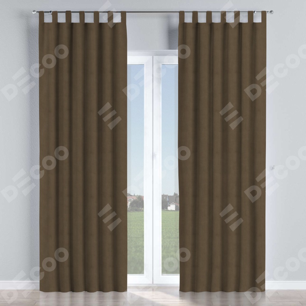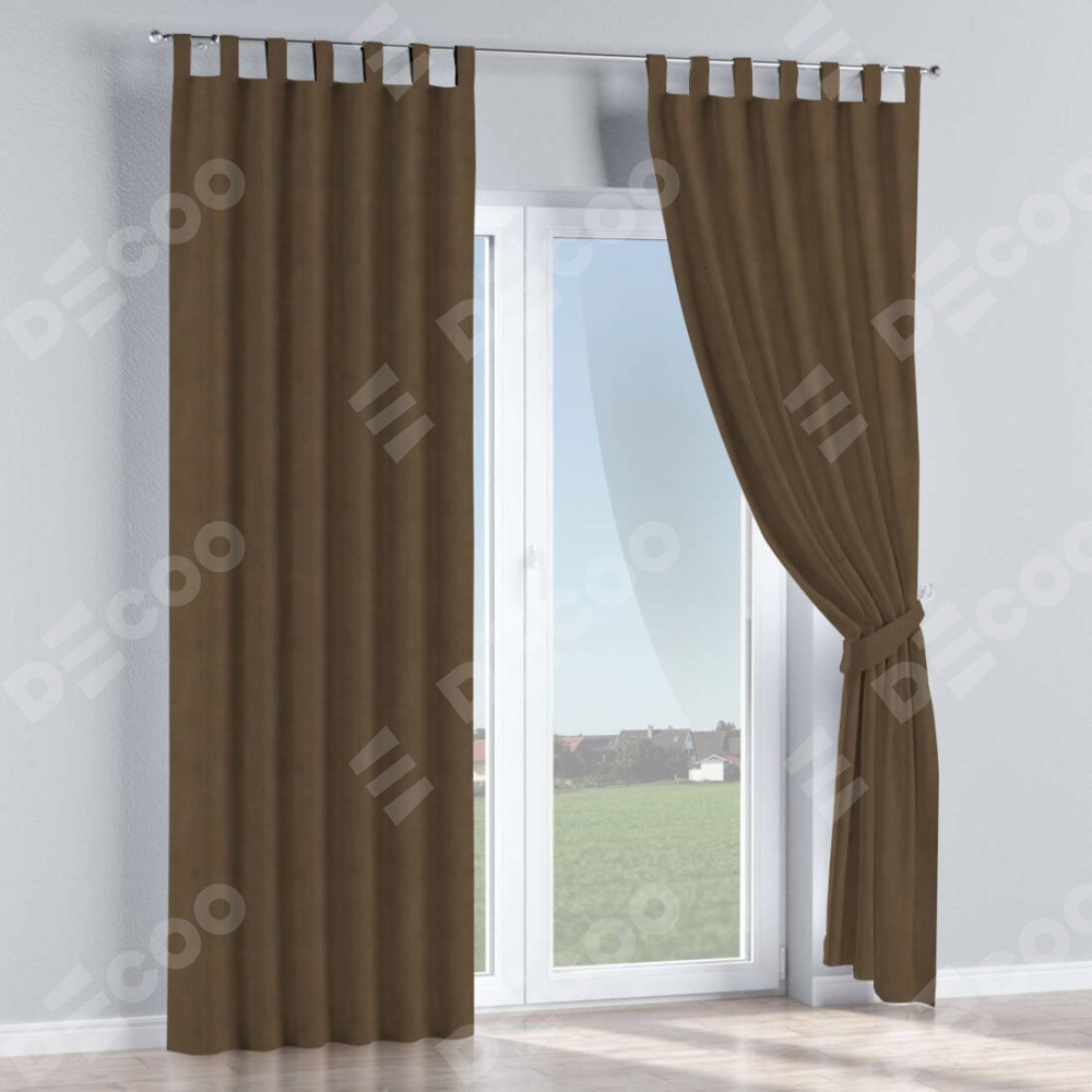 Комплект прямых штор, от производителя «Cortin», пошиты из ткани бархат тёмно-коричневый, артикул ткани 5017. Данная модель пошита на петлях, комплектуется на выбор круглым карнизом и подходит для монтажа на стену или потолок. Прямые шторы на петлях шьются по стандарту с коэффициентом 1/2 (на 100 см. ширины проёма 200 см. ширины ткани), отличительным преимуществом данной модели является простой способ монтажа. Достаточно повесить ее на трубу и штора готова!