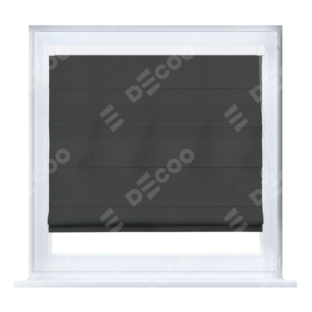 Римская штора производителя «Cortin», устанавливается на створку окна, пошита из ткани бархат серый, артикул 5024. Штора шьётся по индивидуальным размерам, для данного типа римской шторы возможная ширина от 35 до 150 см., высота до 250 см.