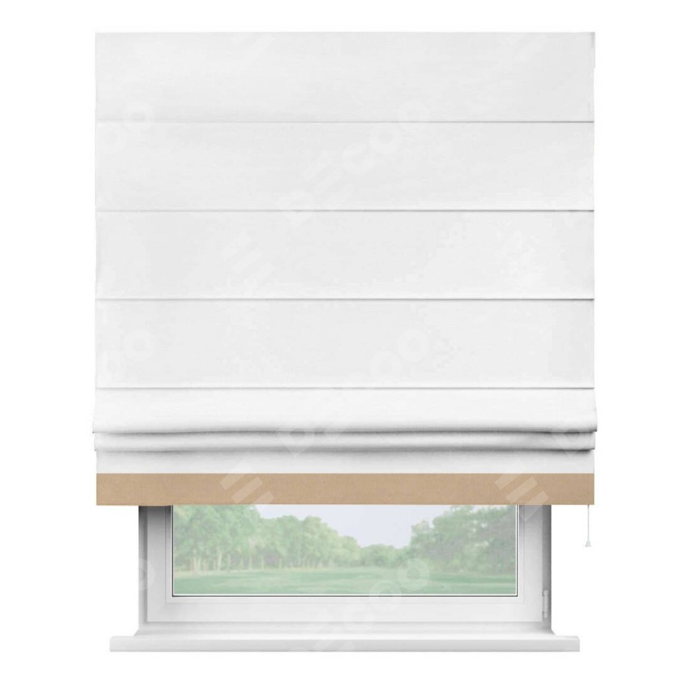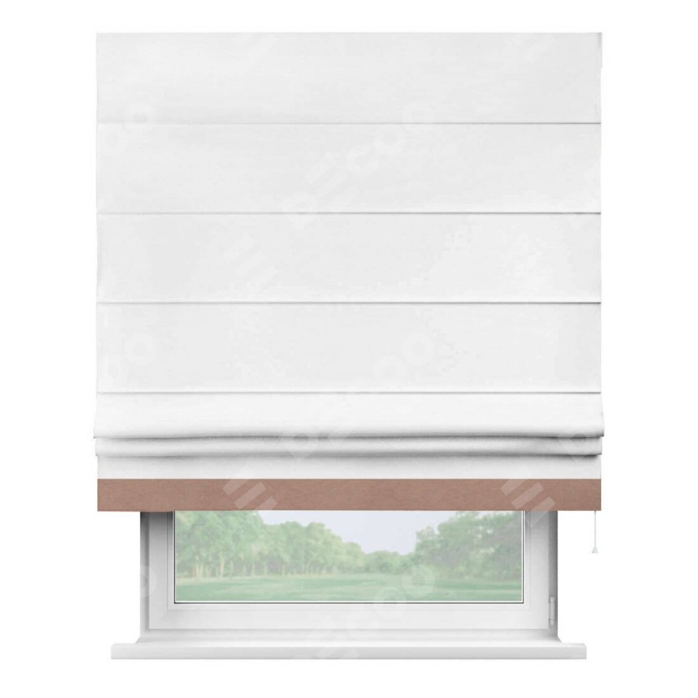 Римская штора производителя «Cortin», используется для проёма, пошита из ткани вельвет дымчато-белый, артикул ткани 85535. Отделка шторы кантом «Джестер», ткань для канта используется из вельвета разной расцветки на выбор. Имеет универсальный механизм и подходит для монтажа: на потолок, на стену и в нишу.