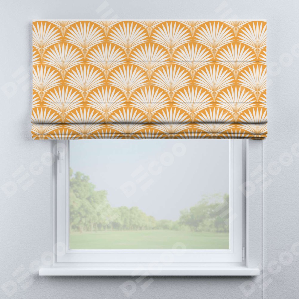 Римская штора «Кортин» для проема «Арт-деко листья желтый»