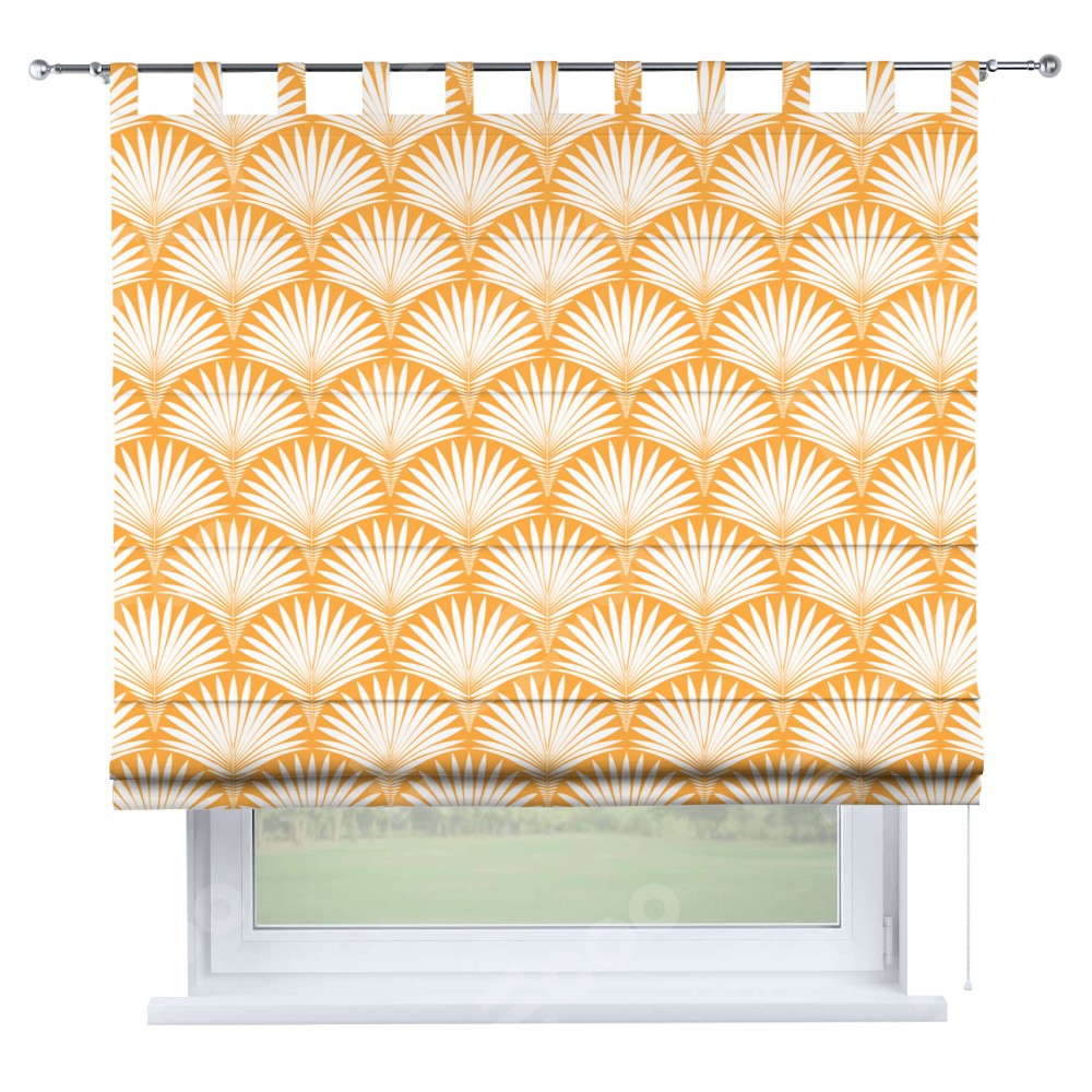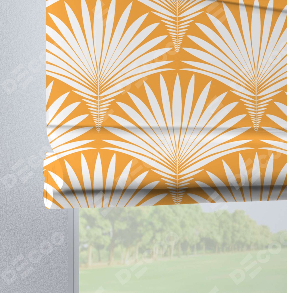 Римская штора производителя «Cortin», используется для проёма, пошита из ткани блэкаут с нанесением сублимационной печати «Арт-деко листья желтый». Данная модель пошита на петлях, комплектуется на выбор круглым карнизом и подходит для монтажа на стену. Римская штора на петлях имеет простую систему регулировки высоты, отличительным преимуществом данной модели является простой способ монтажа. Достаточно повесить ее на трубу и штора готова!