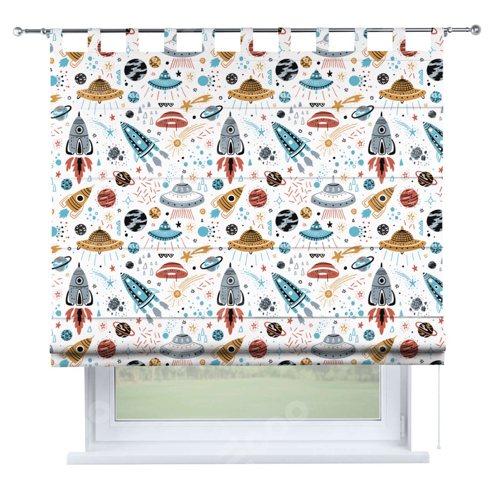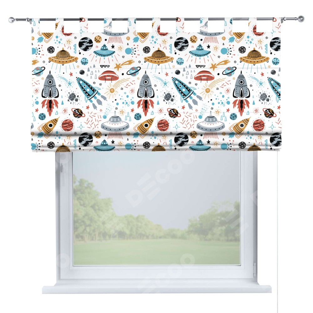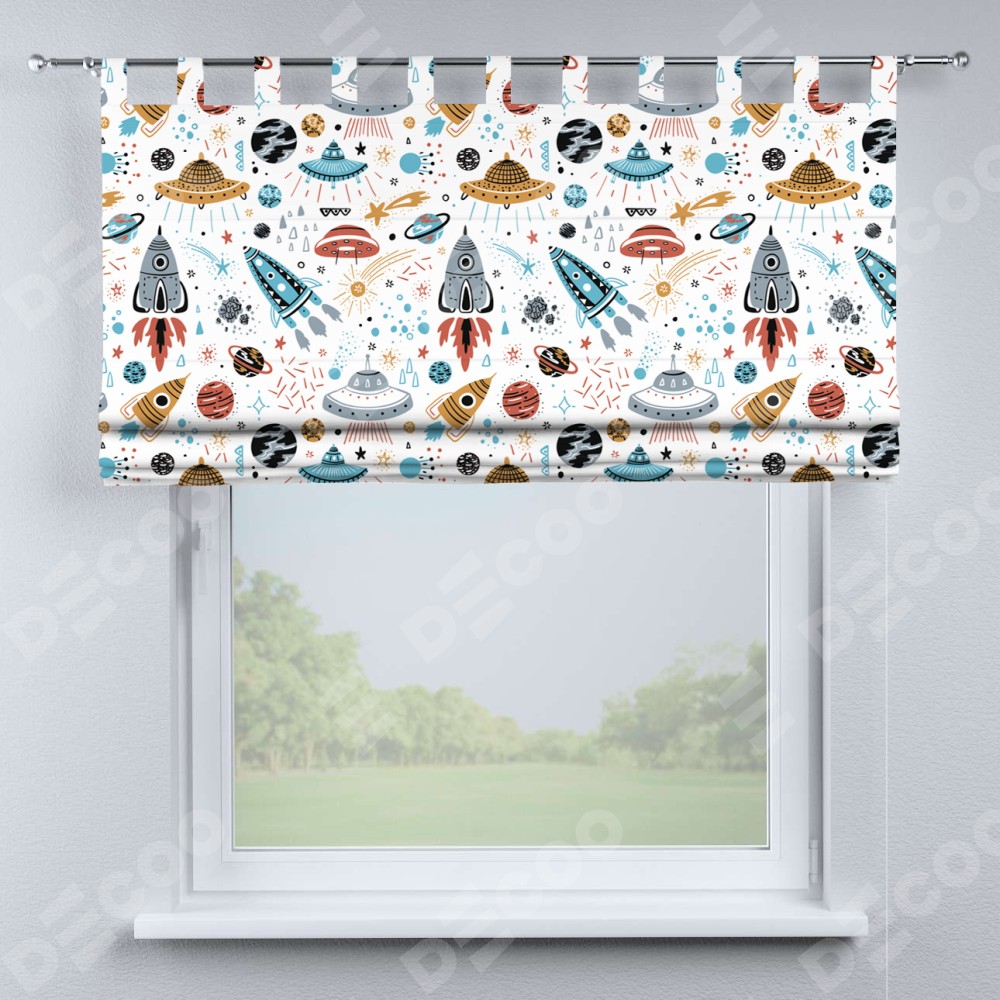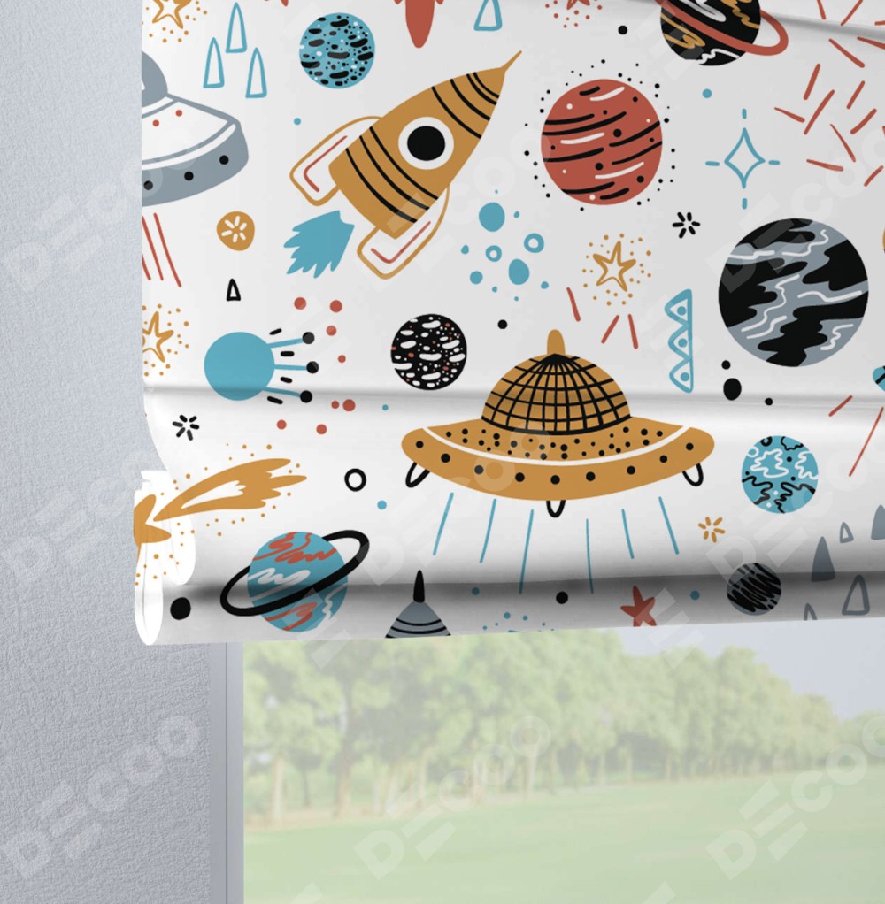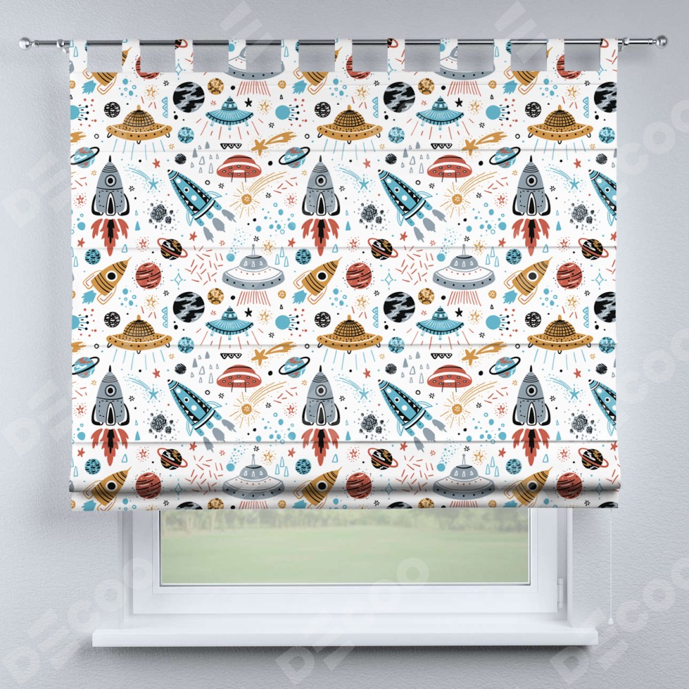 Римская штора производителя «Cortin», используется для проёма, пошита из ткани блэкаут с нанесением сублимационной печати «Космическое приключение». Данная модель пошита на петлях, комплектуется на выбор круглым карнизом и подходит для монтажа на стену. Римская штора на петлях имеет простую систему регулировки высоты, отличительным преимуществом данной модели является простой способ монтажа. Достаточно повесить ее на трубу и штора готова!