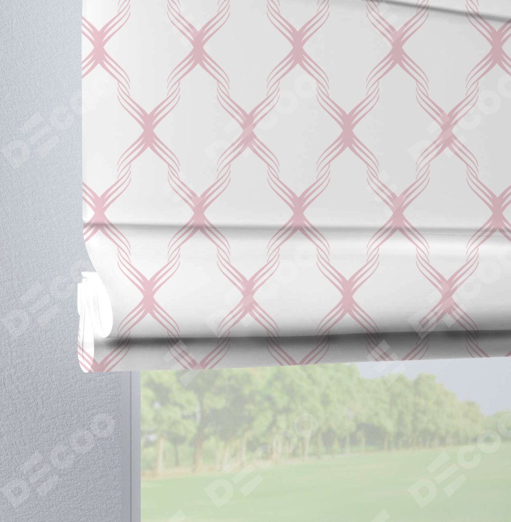 Римская штора производителя «Cortin», используется для проёма, пошита из ткани блэкаут с нанесением сублимационной печати «Розовые ромбы». Данная модель пошита на петлях, комплектуется на выбор круглым карнизом и подходит для монтажа на стену. Римская штора на петлях имеет простую систему регулировки высоты, отличительным преимуществом данной модели является простой способ монтажа. Достаточно повесить ее на трубу и штора готова!