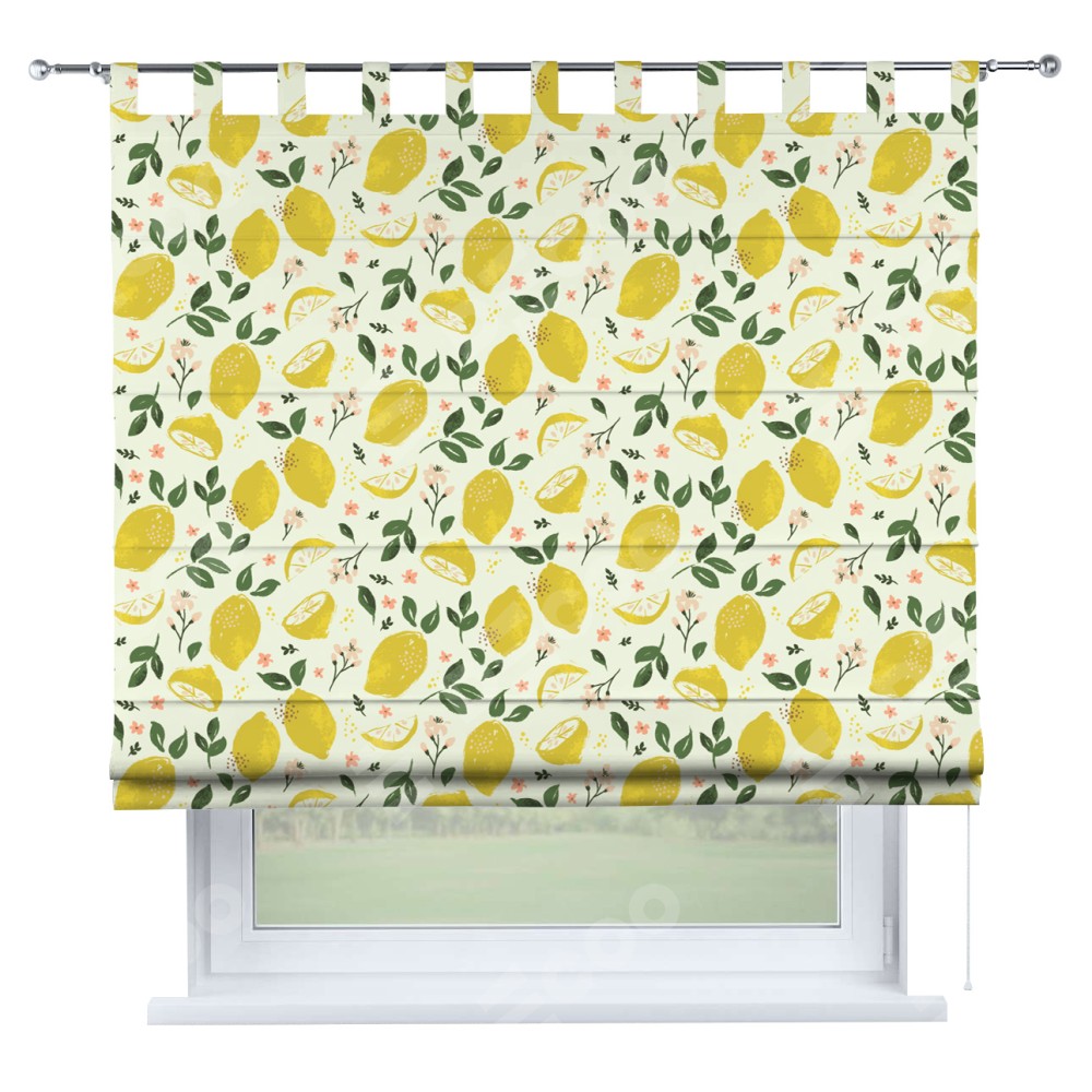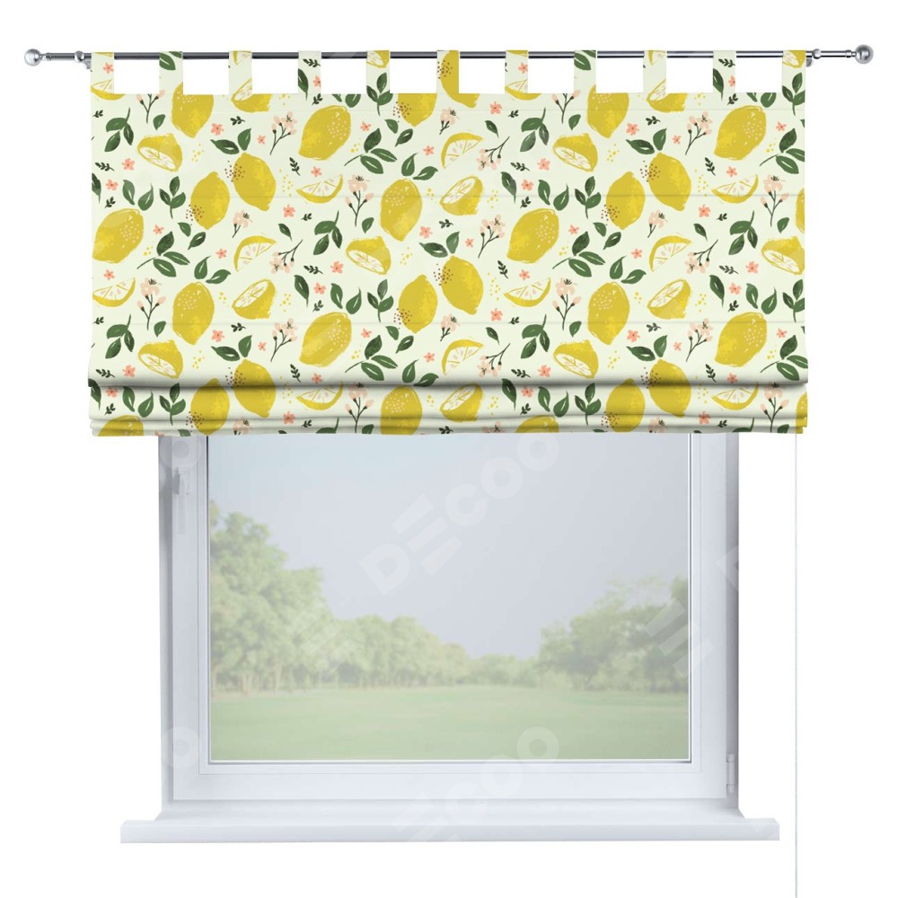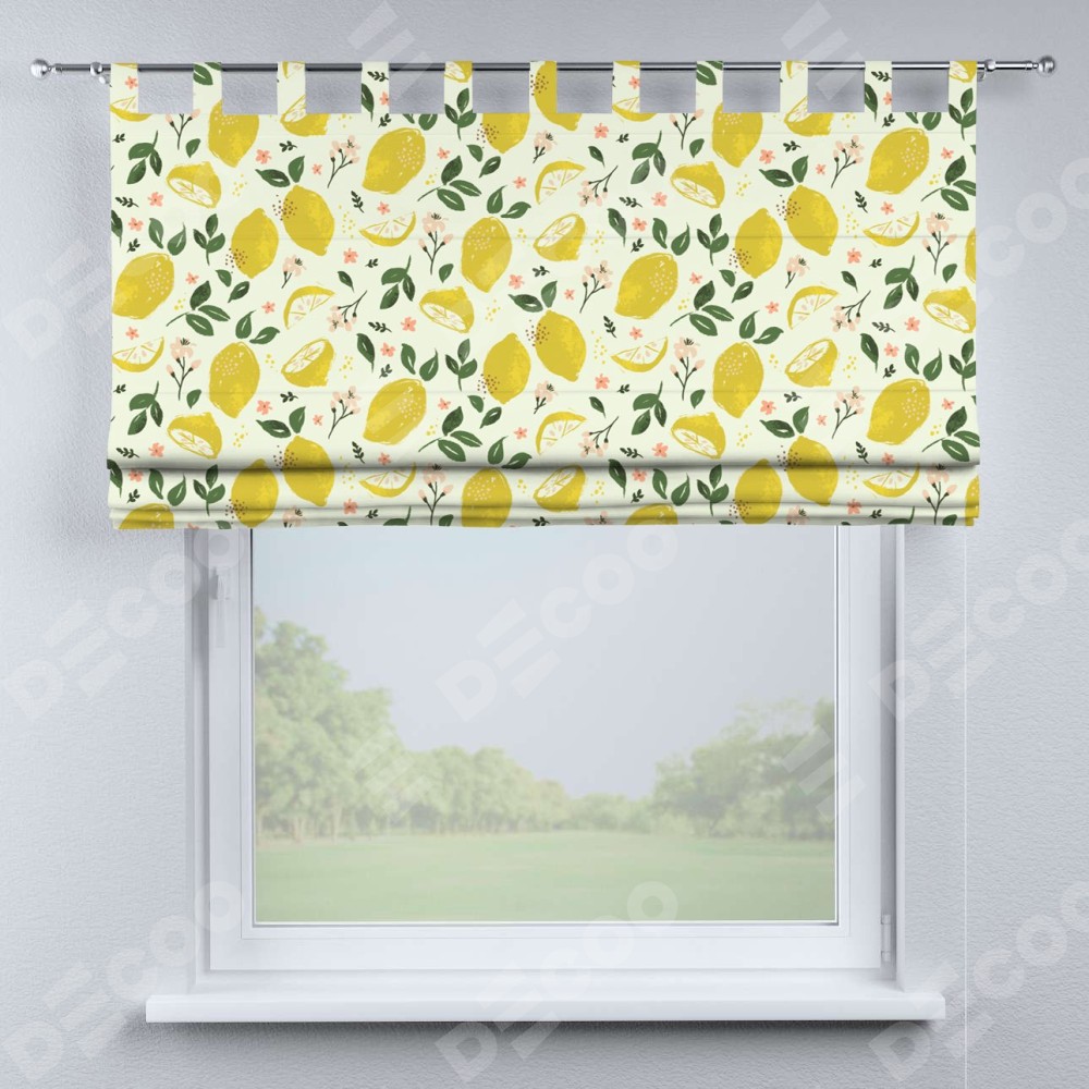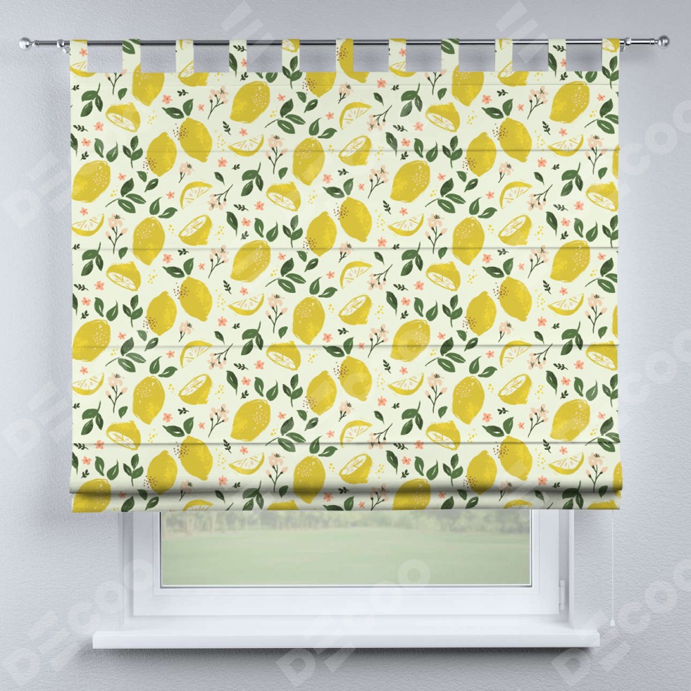 Римская штора производителя «Cortin», используется для проёма, пошита из ткани блэкаут с нанесением сублимационной печати «Сочные лимоны». Данная модель пошита на петлях, комплектуется на выбор круглым карнизом и подходит для монтажа на стену. Римская штора на петлях имеет простую систему регулировки высоты, отличительным преимуществом данной модели является простой способ монтажа. Достаточно повесить ее на трубу и штора готова!