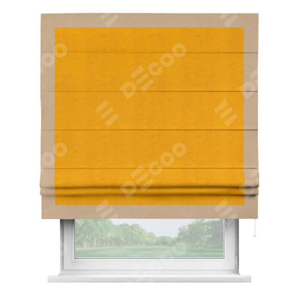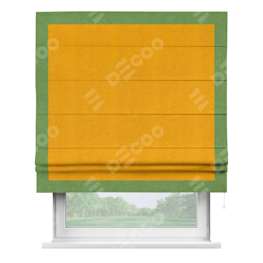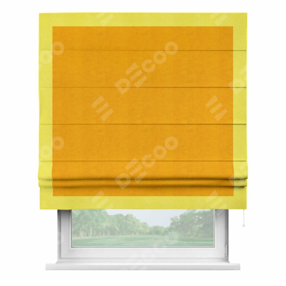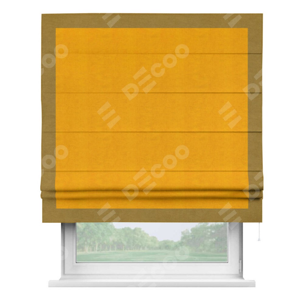 Римская штора «Кортин» с кантом Чесс, для проема, ткань вельвет желтый