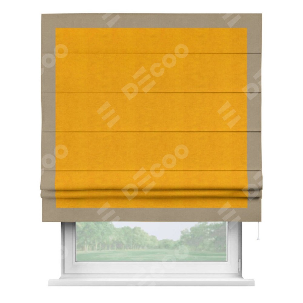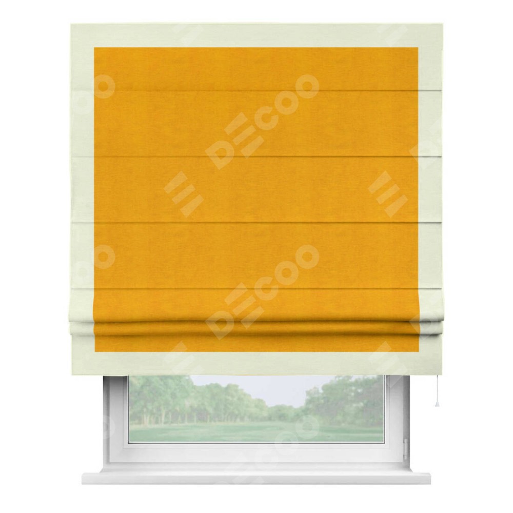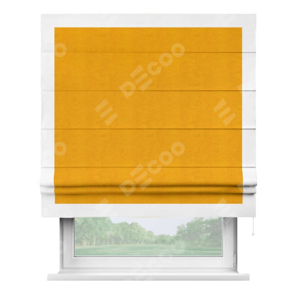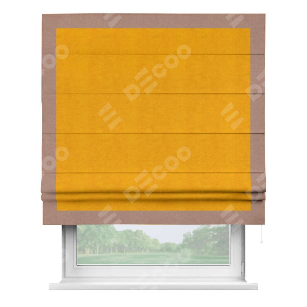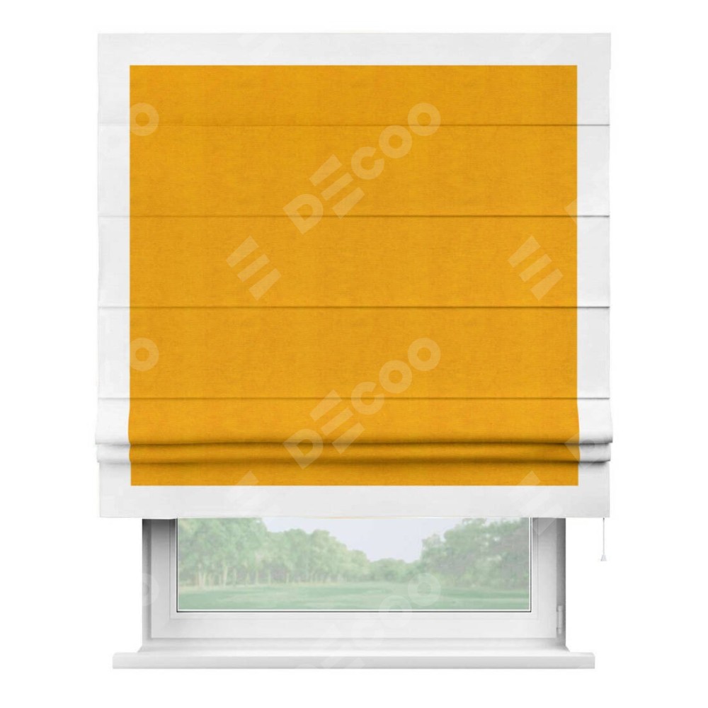 Римская штора «Кортин» с кантом Чесс, для проема, ткань вельвет желтый