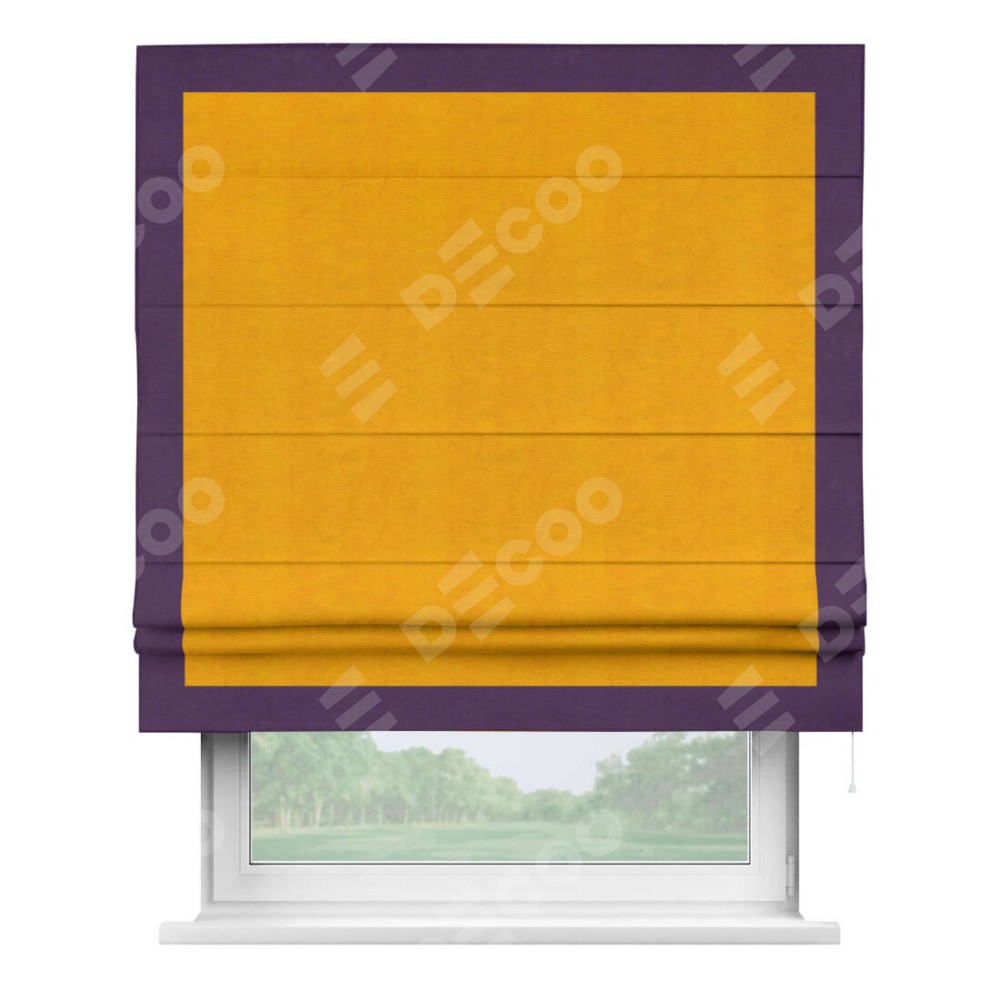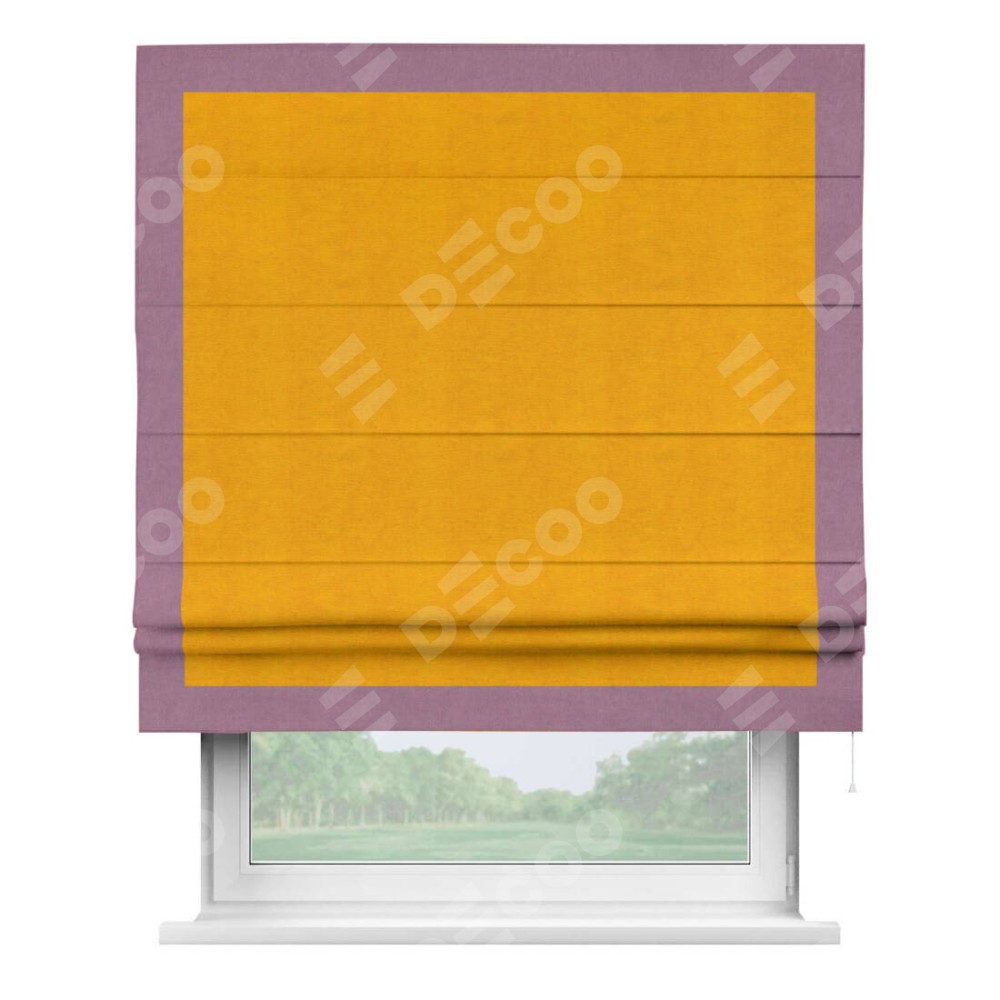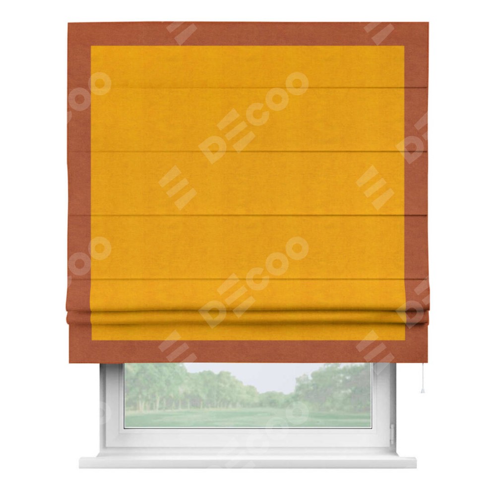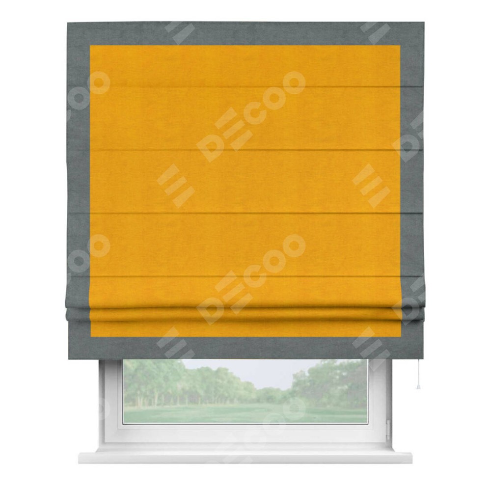 Римская штора «Кортин» с кантом Чесс, для проема, ткань вельвет желтый