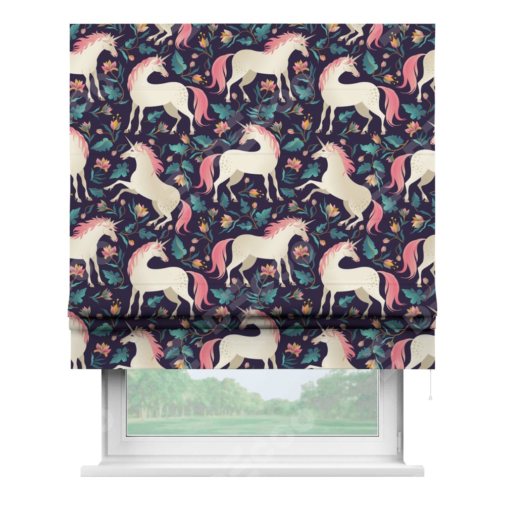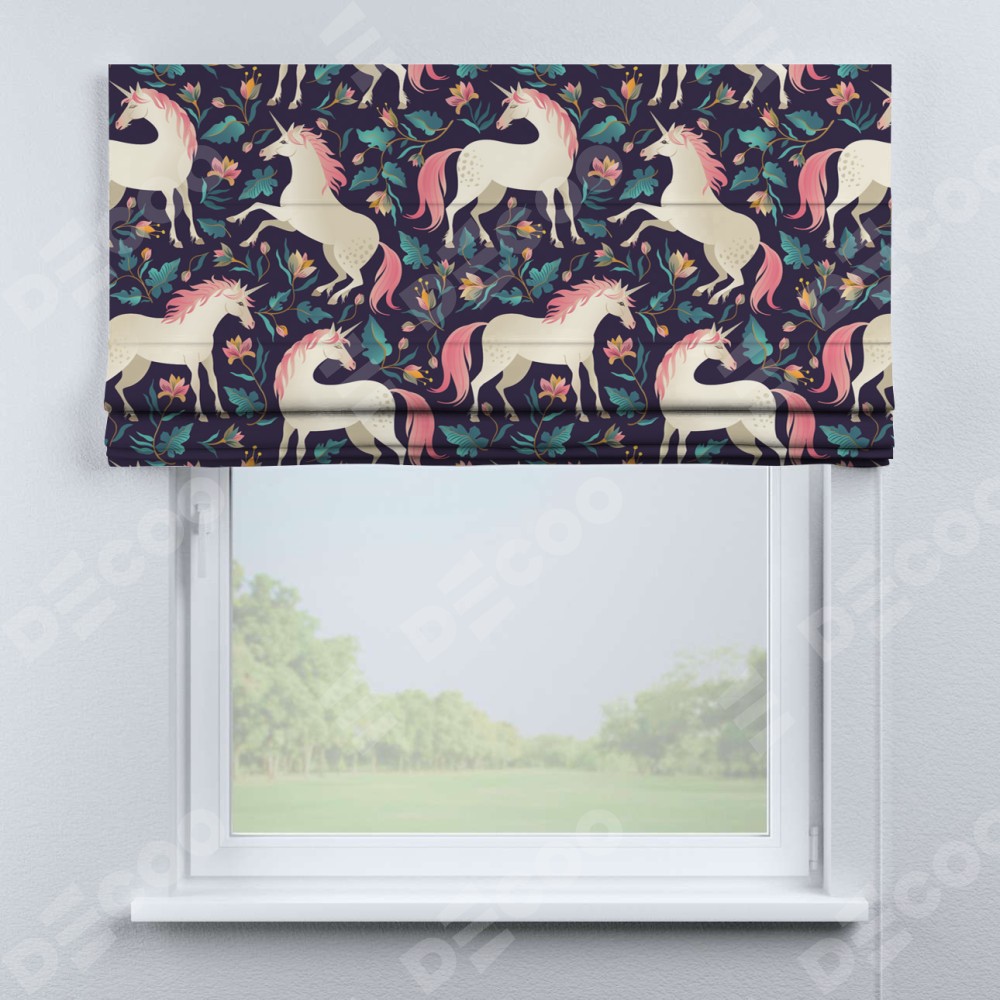 Римская штора «Кортин» для проема «Сказочные единороги»