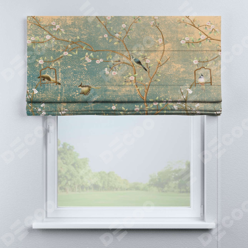 Римская штора производителя «Cortin», используется для проёма, пошита из ткани блэкаут с нанесением сублимационной печати «Цветущий сад». Имеет универсальный механизм и подходит для монтажа: на потолок, на стену и в нишу.