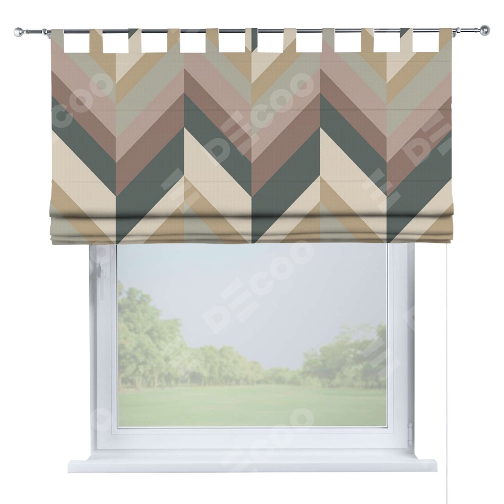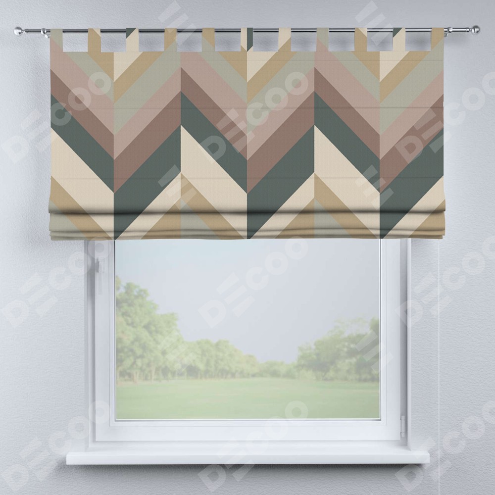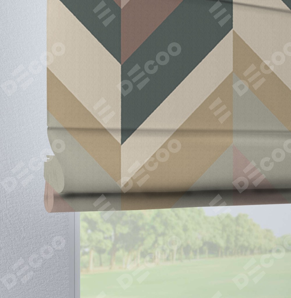 Римская штора производителя «Cortin», используется для проёма, пошита из ткани блэкаут с нанесением сублимационной печати «Шеврон Авеню». Данная модель пошита на петлях, комплектуется на выбор круглым карнизом и подходит для монтажа на стену. Римская штора на петлях имеет простую систему регулировки высоты, отличительным преимуществом данной модели является простой способ монтажа. Достаточно повесить ее на трубу и штора готова!