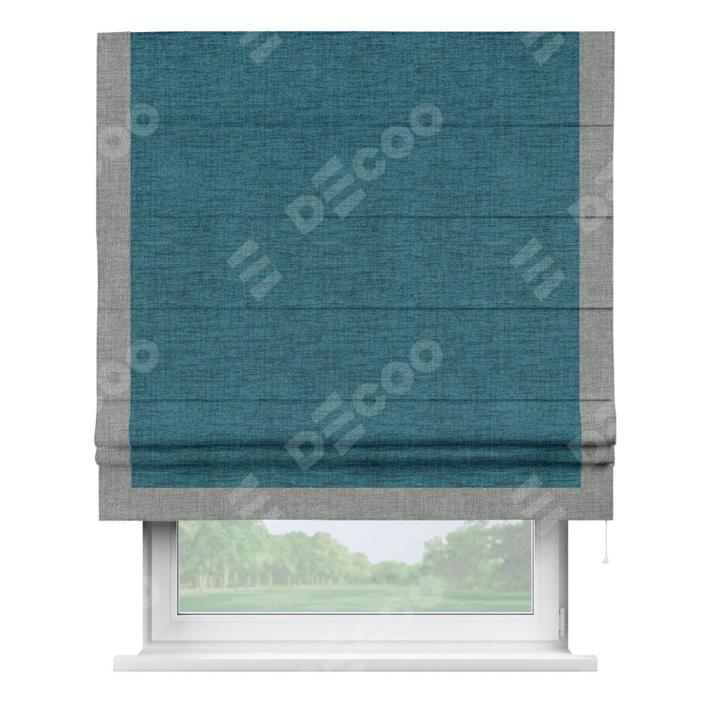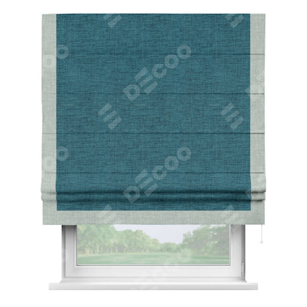 Римская штора «Кортин» с кантом Виктория, для проема, ткань рогожка димаут, синий