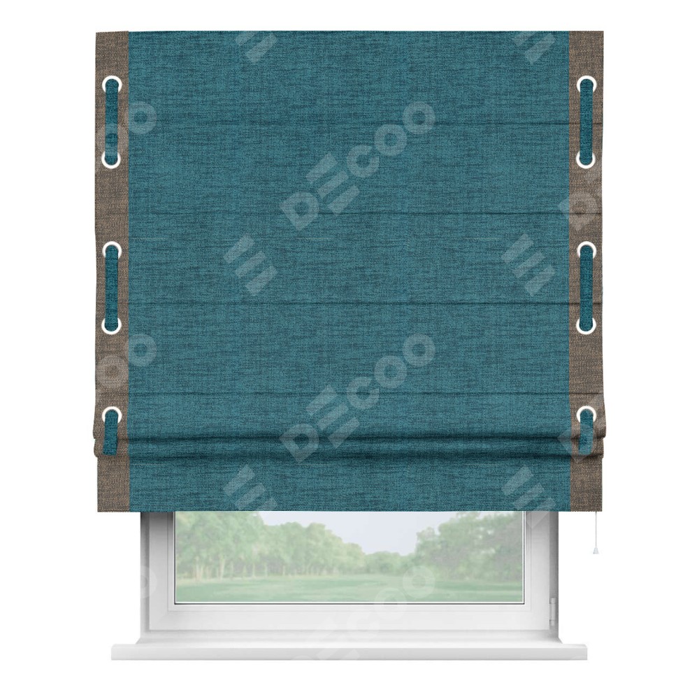 Римская штора «Кортин» с кантом Стрим Дуо (люверсы с пояском), для проема, ткань рогожка димаут, синий