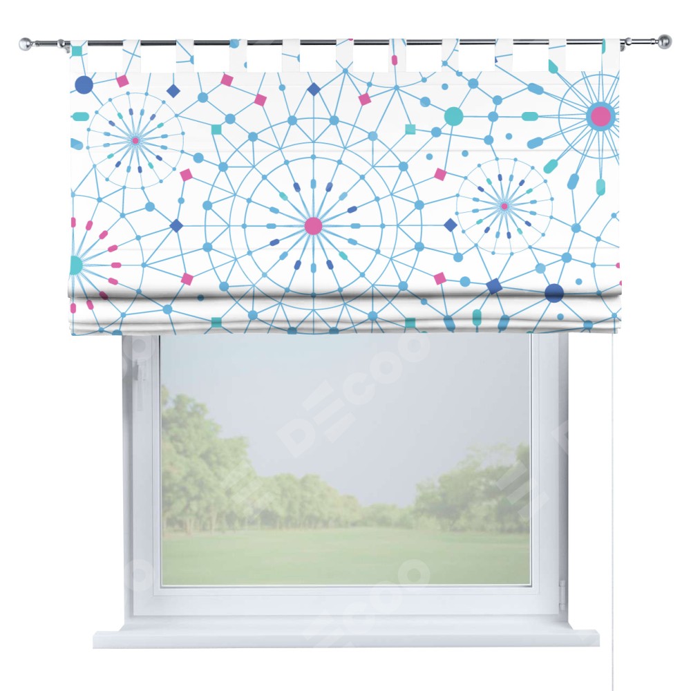 Римская штора производителя «Cortin», используется для проёма, пошита из ткани блэкаут с нанесением сублимационной печати «Круги и линии». Данная модель пошита на петлях, комплектуется на выбор круглым карнизом и подходит для монтажа на стену. Римская штора на петлях имеет простую систему регулировки высоты, отличительным преимуществом данной модели является простой способ монтажа. Достаточно повесить ее на трубу и штора готова!