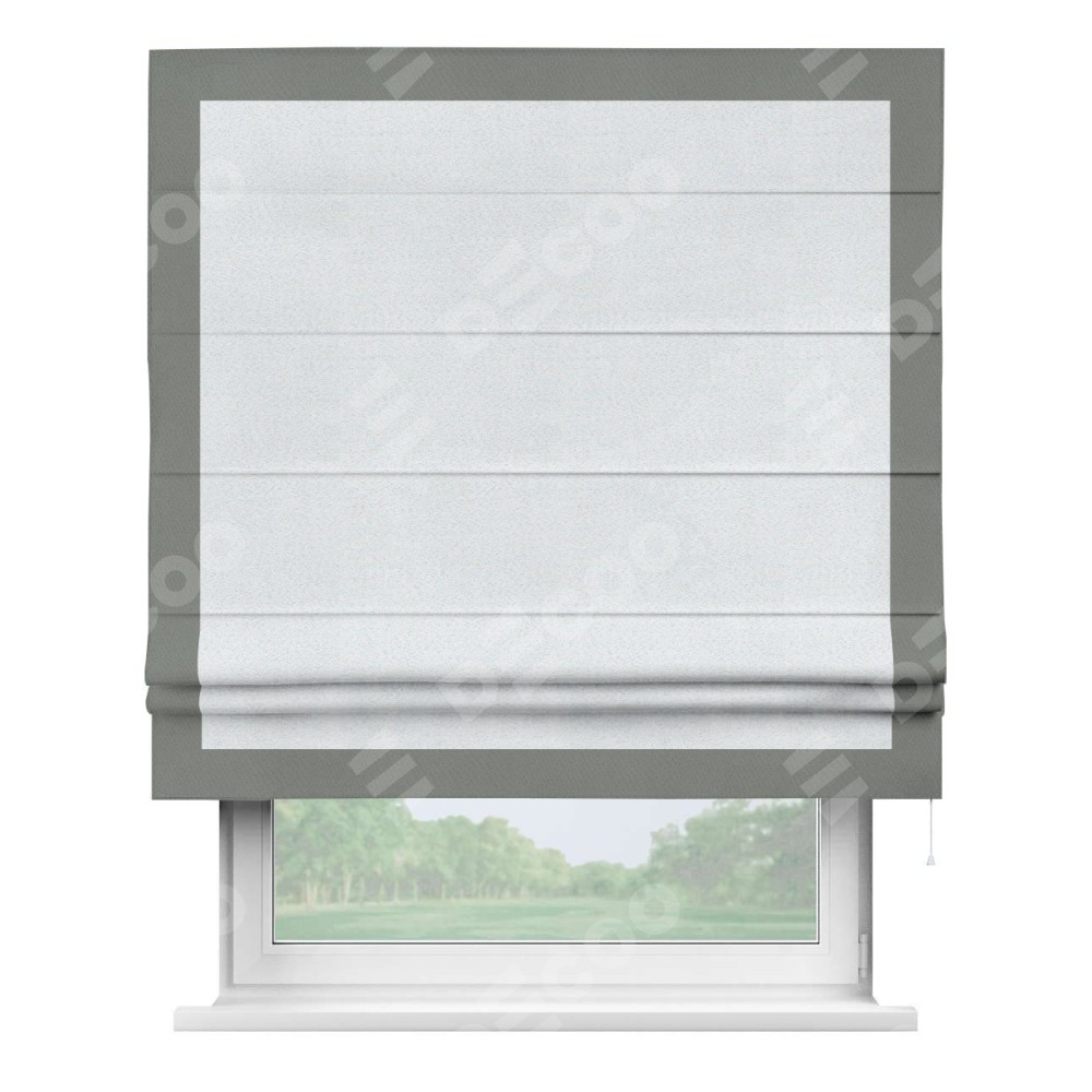 Римская штора «Кортин» с кантом Чесс, для проема, ткань блэкаут однотонный дымчато-белый