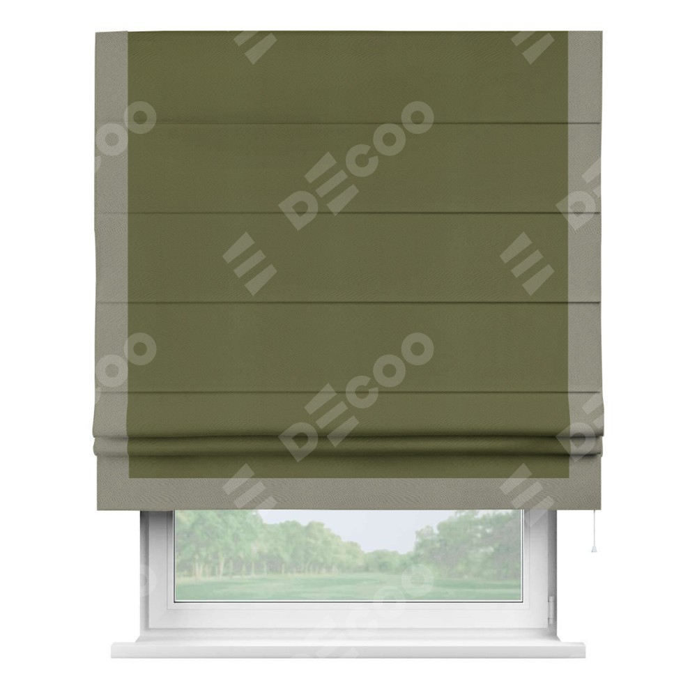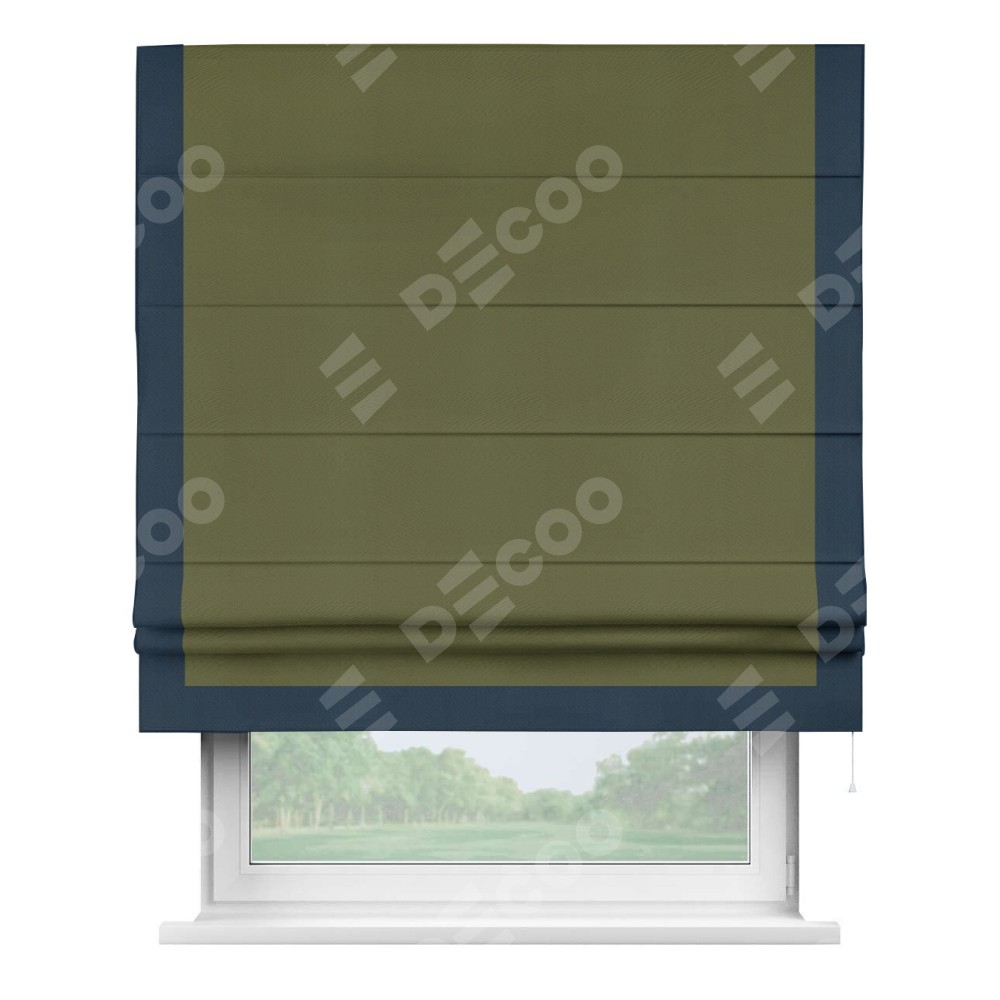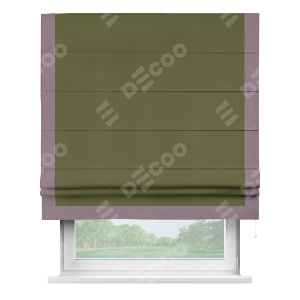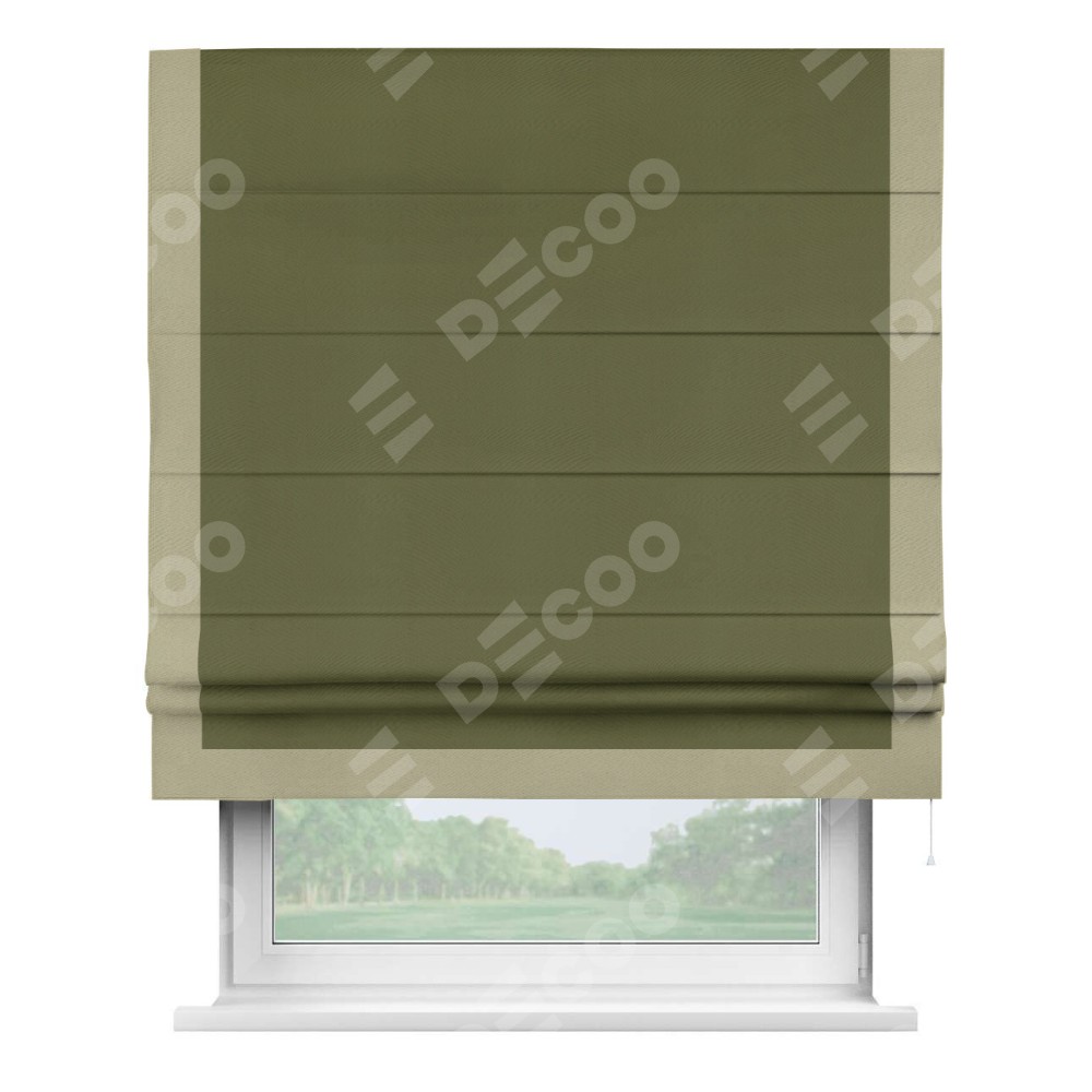 Римская штора «Кортин» с кантом Виктория, для проема, ткань блэкаут однотонный зелёный