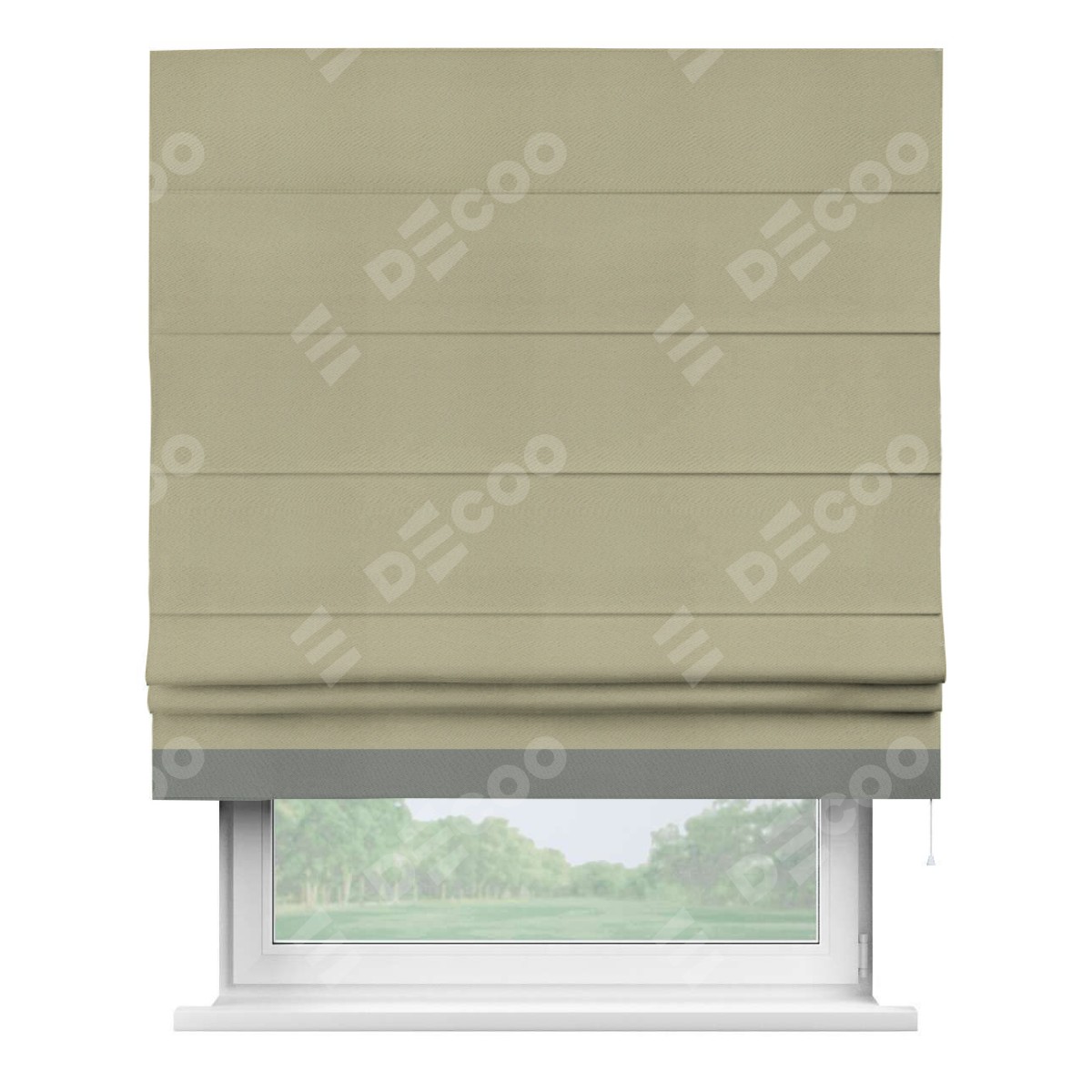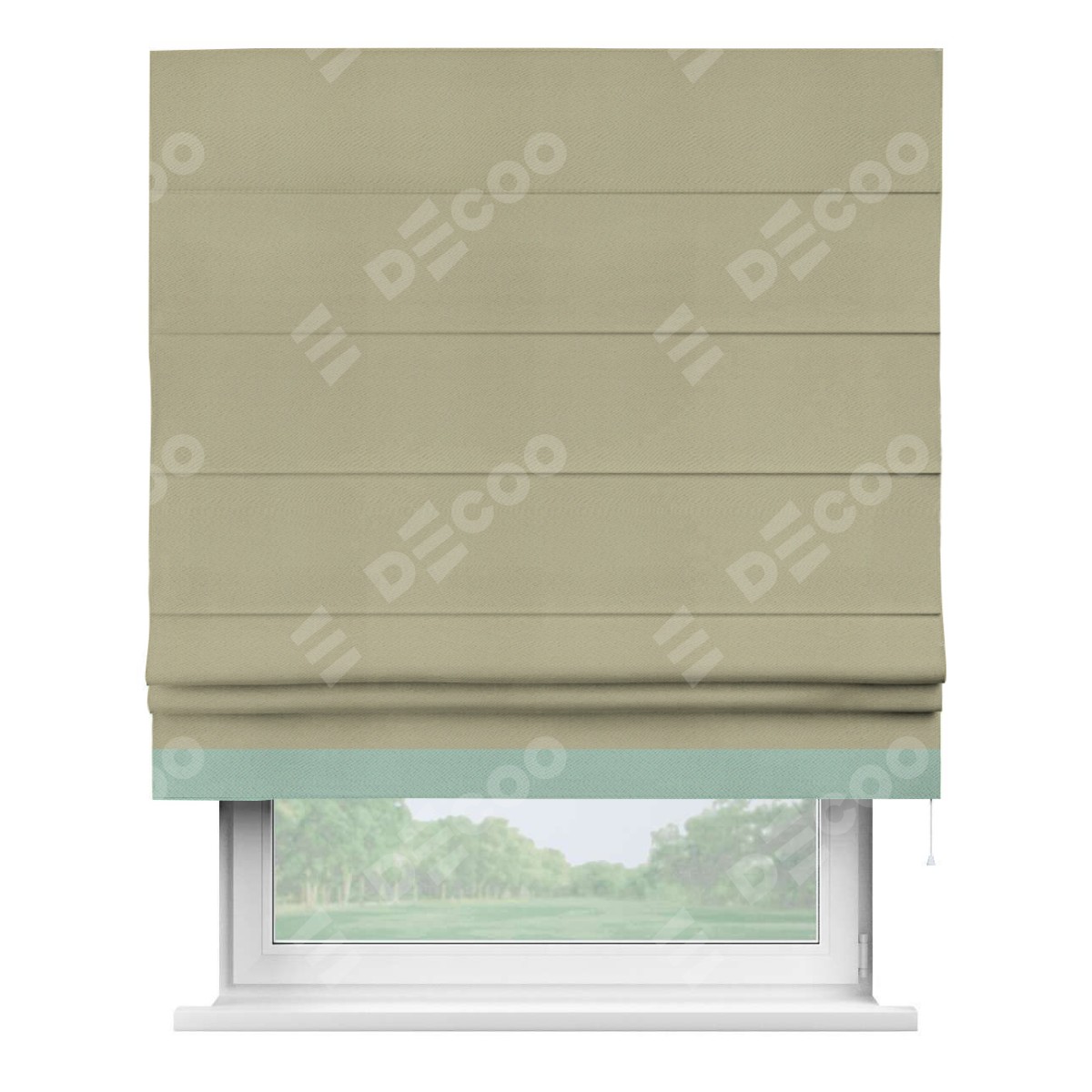 Римская штора производителя «Cortin», используется для проёма, пошита из ткани блэкаут однотонный милано капучино, артикул ткани 06. Отделка шторы кантом «Джестер», ткань для канта используется из блэкаута однотонного разной расцветки на выбор. Имеет универсальный механизм и подходит для монтажа: на потолок, на стену и в нишу.