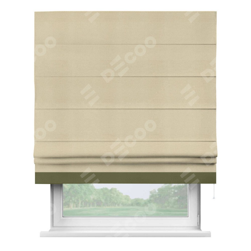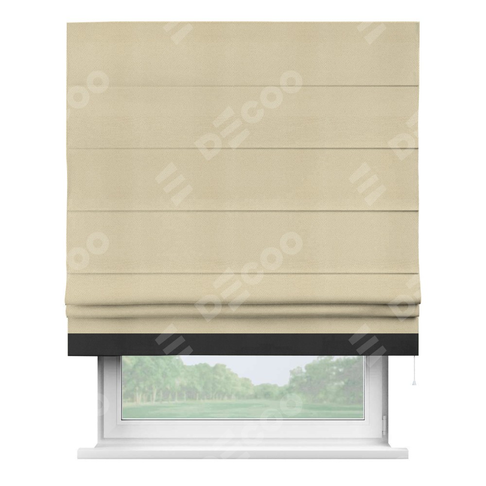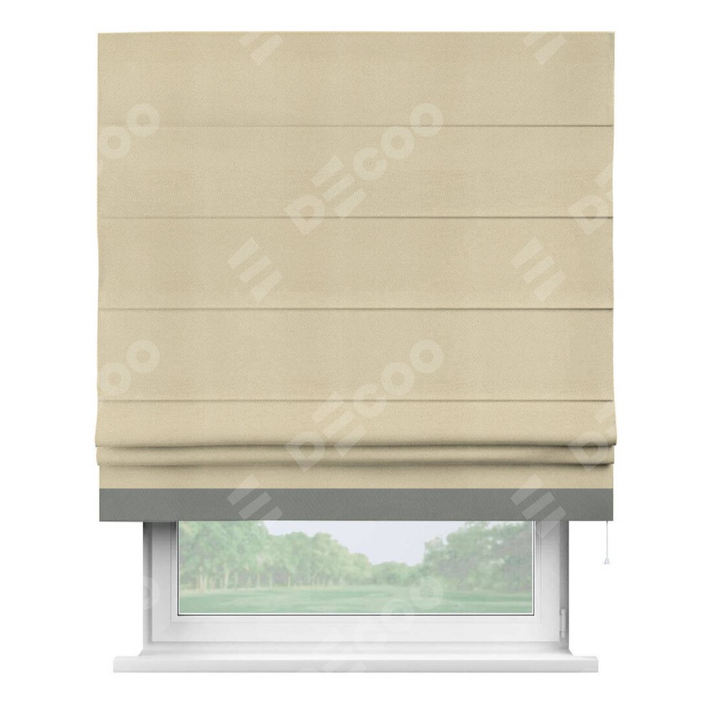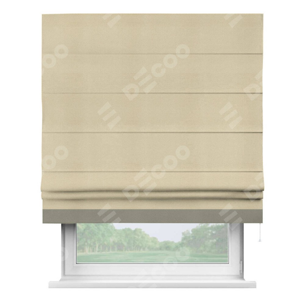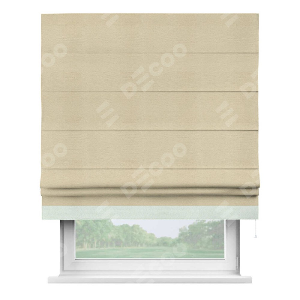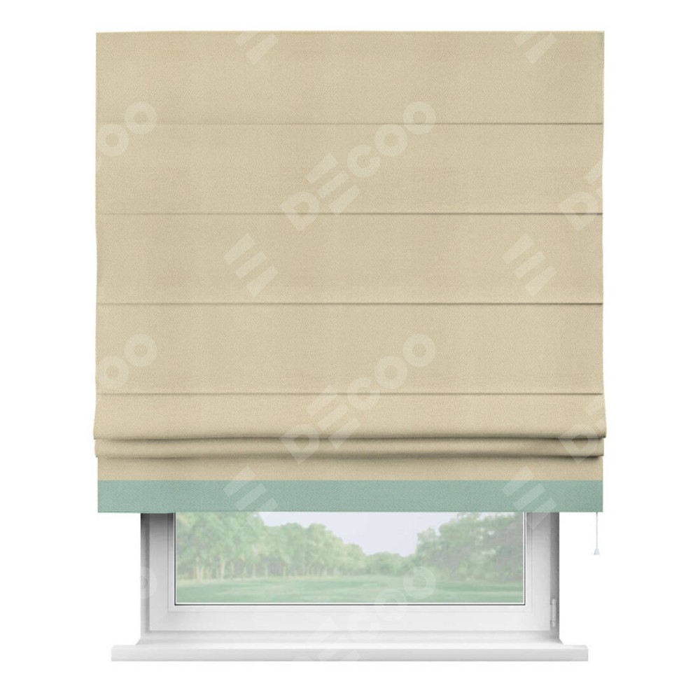 Римская штора производителя «Cortin», используется для проёма, пошита из ткани блэкаут однотонный милано латте, артикул ткани 05. Отделка шторы кантом «Джестер», ткань для канта используется из блэкаута однотонного разной расцветки на выбор. Имеет универсальный механизм и подходит для монтажа: на потолок, на стену и в нишу.