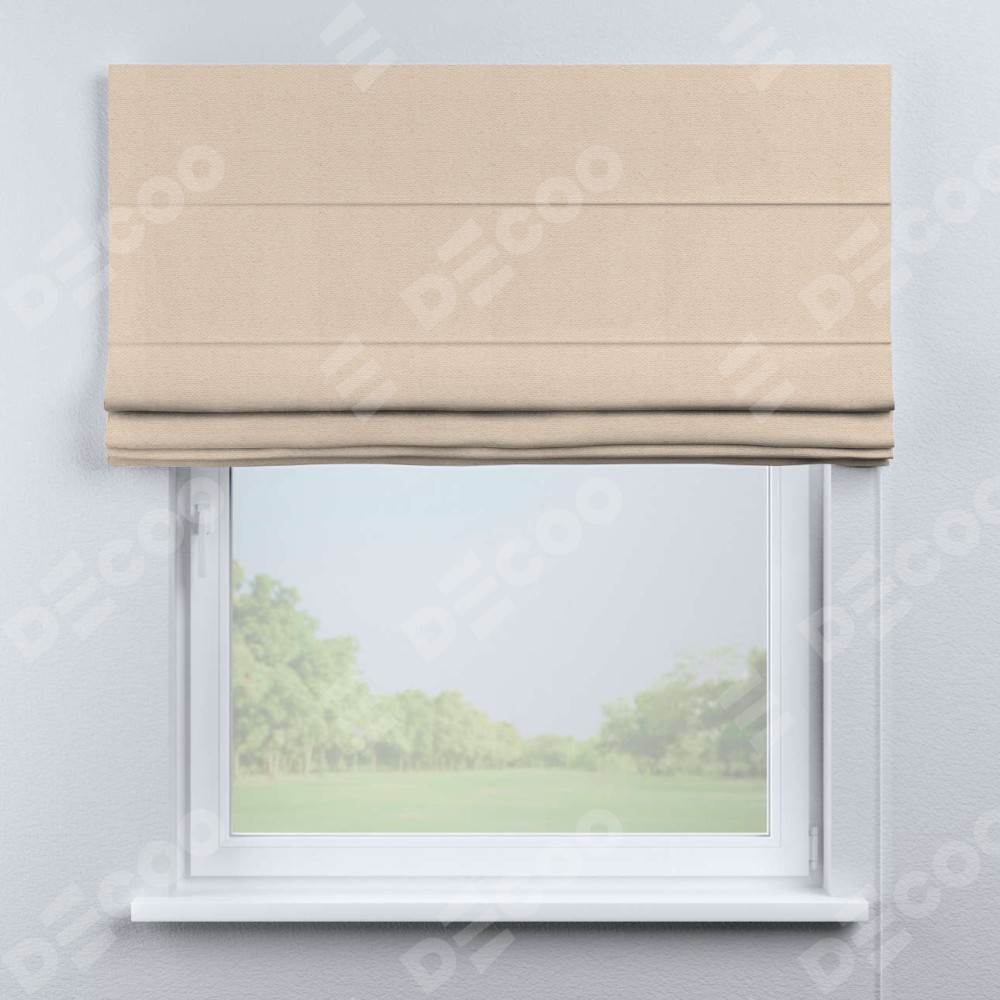 Римская штора производителя «Cortin», используется для проёма, пошита из ткани блэкаут тиснение с блеском розовая пудра, артикул ткани 34632. Изнаночная сторона материала черного цвета, что обеспечивает необходимую светонепроницаемость. Имеет универсальный механизм и подходит для монтажа: на потолок, на стену и в нишу.