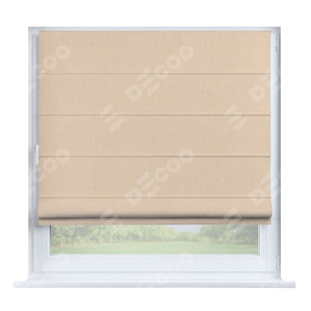 Римская штора производителя «Cortin», устанавливается на створку окна, пошита из ткани блэкаут тиснение с блеском бежевый, артикул 34627. Изнаночная сторона материала черного цвета, что обеспечивает необходимую светонепроницаемость. Штора шьётся по индивидуальным размерам, для данного типа римской шторы возможная ширина от 35 до 150 см., высота до 250 см.
