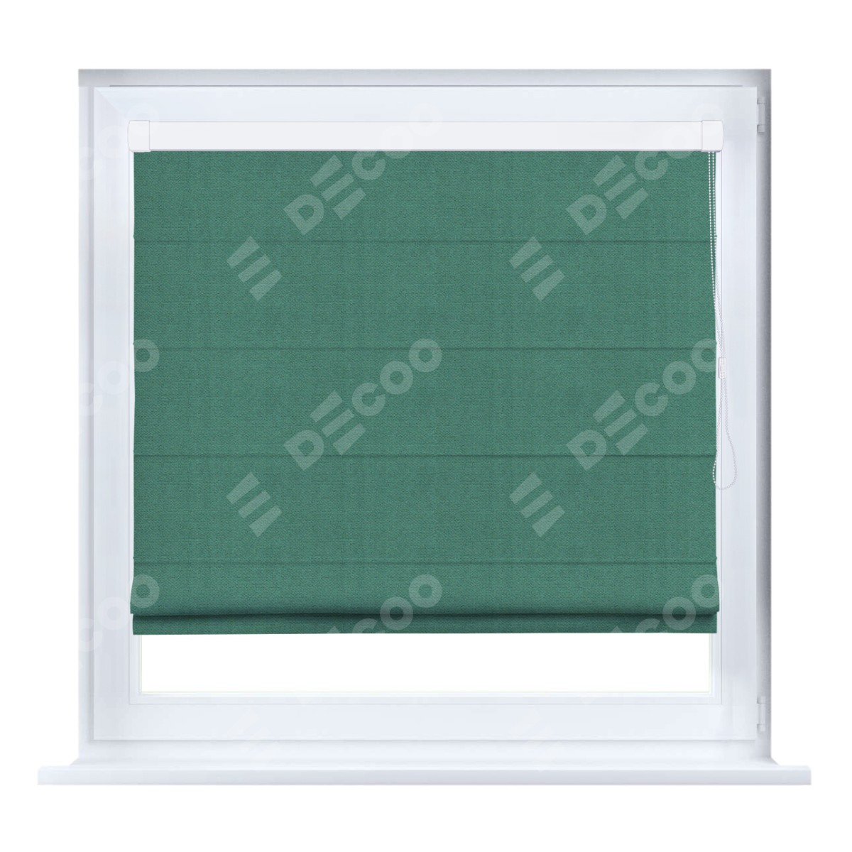 Римская штора кассетного типа, производителя «Cortin», устанавливается только на пластиковые окна и прилегает к стеклопакету, пошита из ткани из ткани блэкаут тиснение с блеском изумрудный, артикул 34628. Изнаночная сторона материала черного цвета, что обеспечивает необходимую светонепроницаемость.