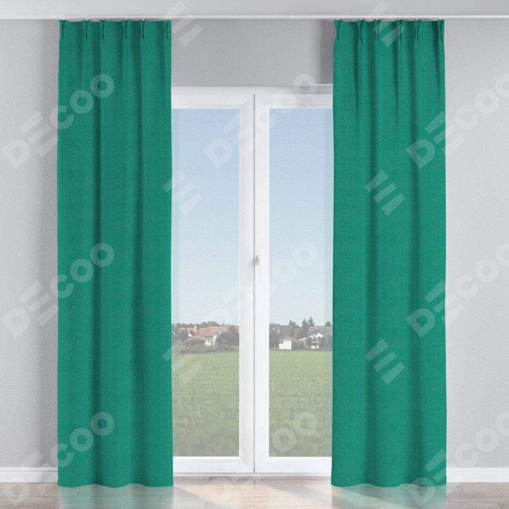 Комплект прямых штор, от производителя «Cortin», пошиты из ткани блэкаут с блеском изумрудный, артикул ткани 34628. С изнаночной стороны в верхней части штор пристрачивается шторная лента с декоративными складками «Кустик». Обратная сторона основного материала черного цвета, что обеспечивает необходимую светонепроницаемость. Для создания элегантных складок прямые шторы шьются по стандарту с коэффициентом 1:2 (на 100 см. ширины проёма 200 см. ширины ткани).