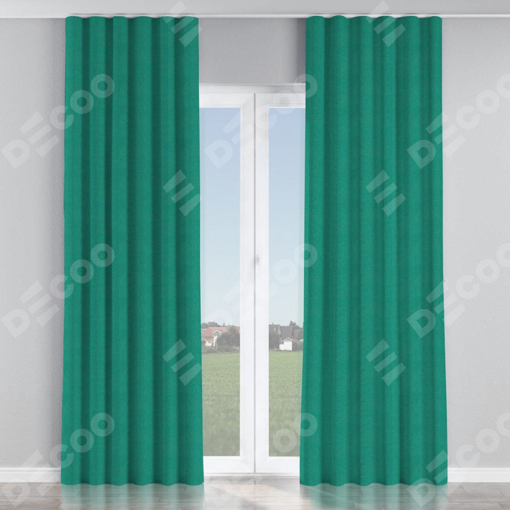 Комплект прямых штор, от производителя «Cortin», пошиты из ткани блэкаут с блеском изумрудный, артикул ткани 34628. С изнаночной стороны в верхней части штор пристрачивается шторная лента с декоративными складками «Волна». Обратная сторона основного материала черного цвета, что обеспечивает необходимую светонепроницаемость. Для создания элегантных складок прямые шторы шьются по стандарту с коэффициентом 1:2 (на 100 см. ширины проёма 200 см. ширины ткани).