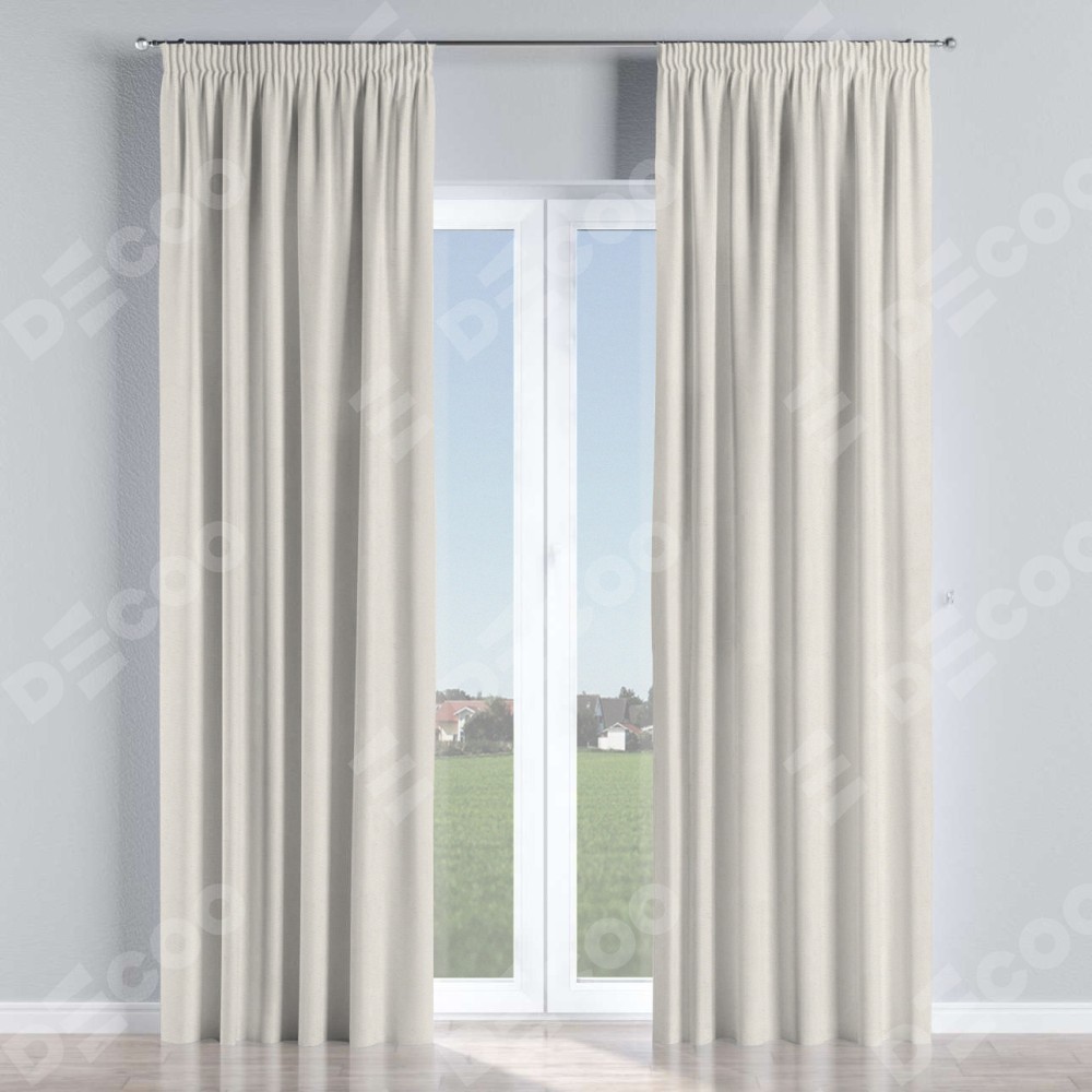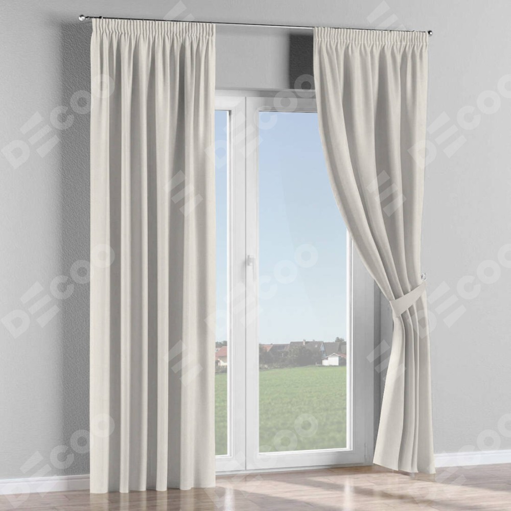 Комплект прямых штор, от производителя «Cortin», пошиты из ткани блэкаут с блеском светло-серый, артикул ткани 34633. С изнаночной стороны в верхней части штор пристрачивается шторная лента с декоративными складками «Карандаш». Обратная сторона основного материала черного цвета, что обеспечивает необходимую светонепроницаемость. Для создания элегантных складок прямые шторы шьются по стандарту с коэффициентом 1:2 (на 100 см. ширины проёма 200 см. ширины ткани).