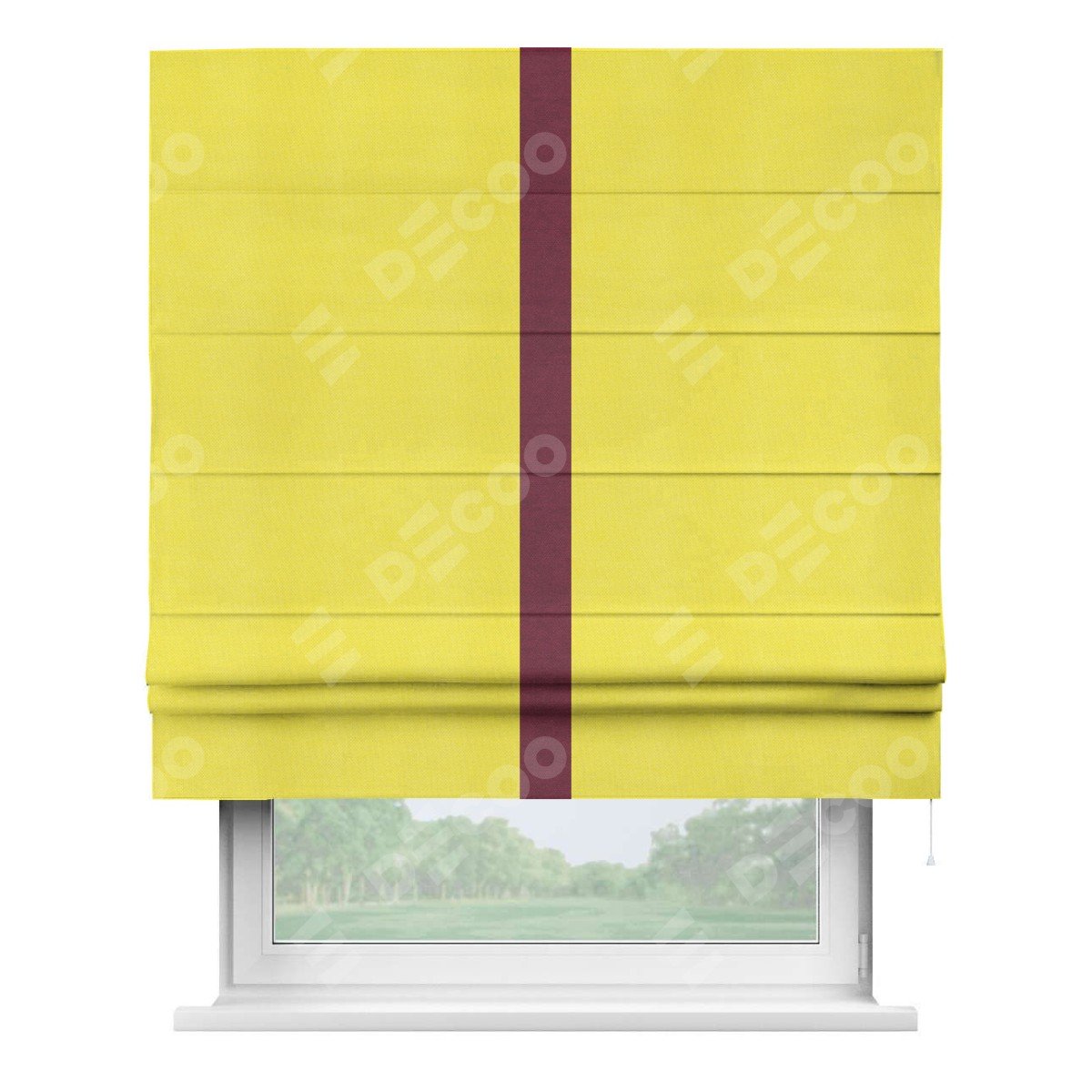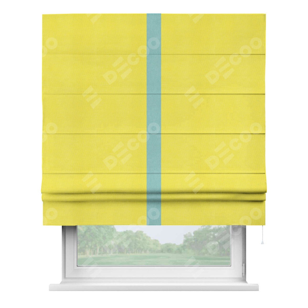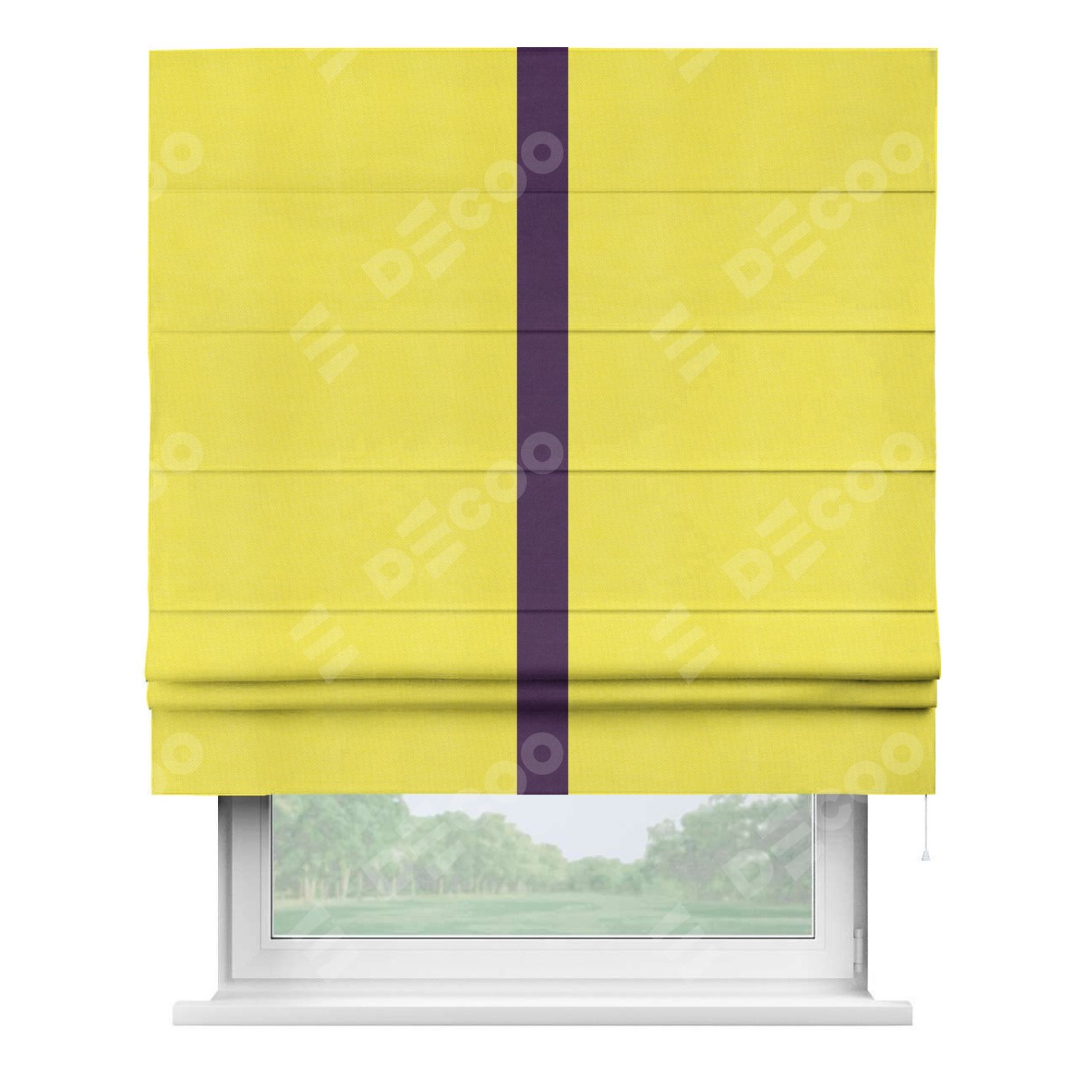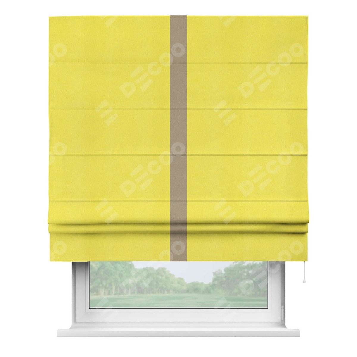 Римская штора производителя «Cortin», используется для проёма, пошита из ткани вельвет cветло-желтый, артикул ткани 30997. Отделка шторы кантом «Хайвей», ткань для канта используется из вельвета разной расцветки на выбор. Имеет универсальный механизм и подходит для монтажа: на потолок, на стену и в нишу.