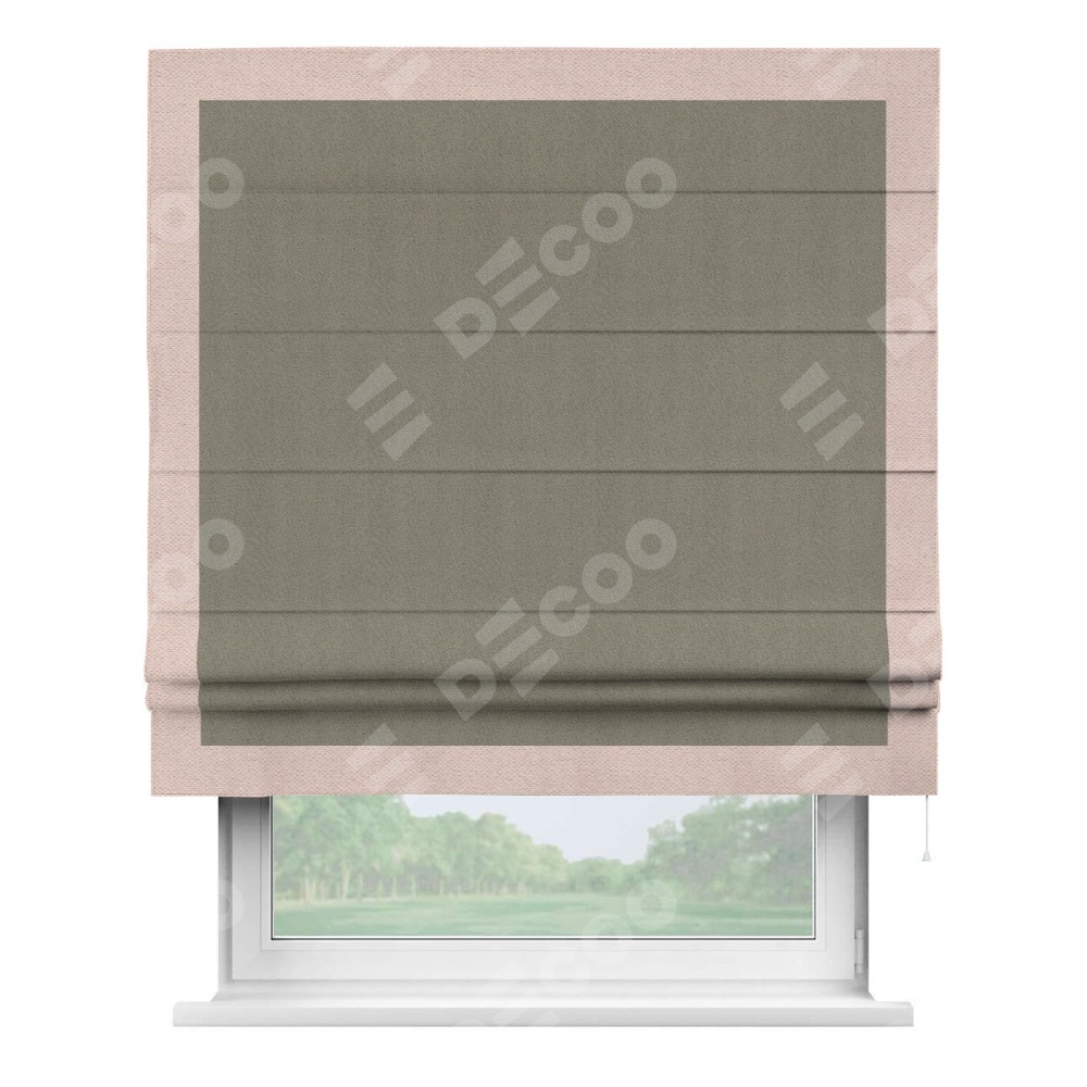 Римская штора производителя «Cortin», используется для проёма, пошита из ткани блэкаут с блеском графитовый, артикул 34648. Отделка шторы кантом «Чесс», ткань для канта используется из блэкаута с блеском разной расцветки на выбор. Изнаночная сторона материала черного цвета, что обеспечивает необходимую светонепроницаемость. Имеет универсальный механизм и подходит для монтажа: на потолок, на стену и в нишу.