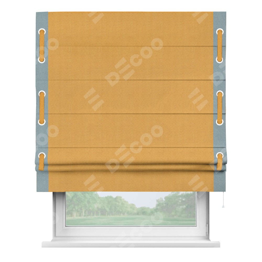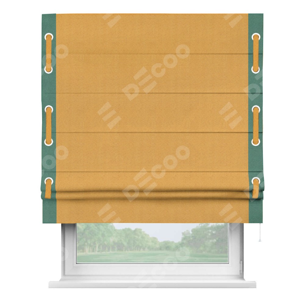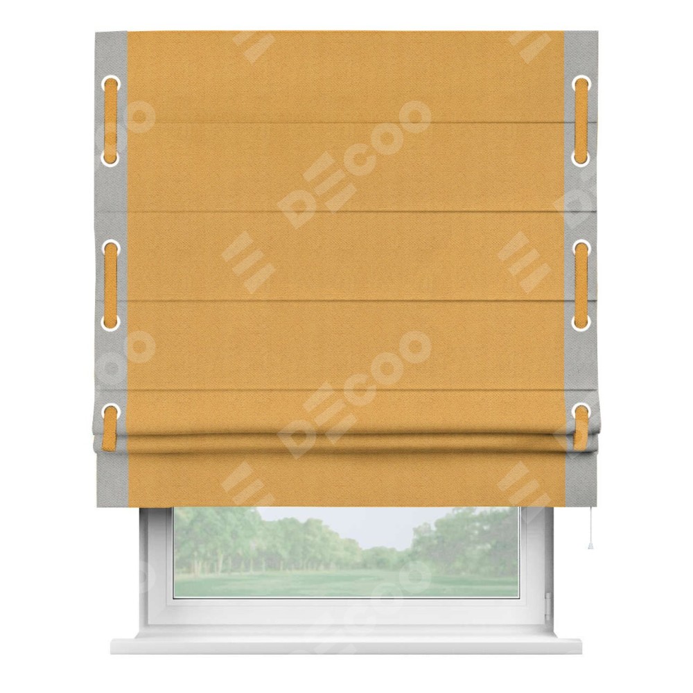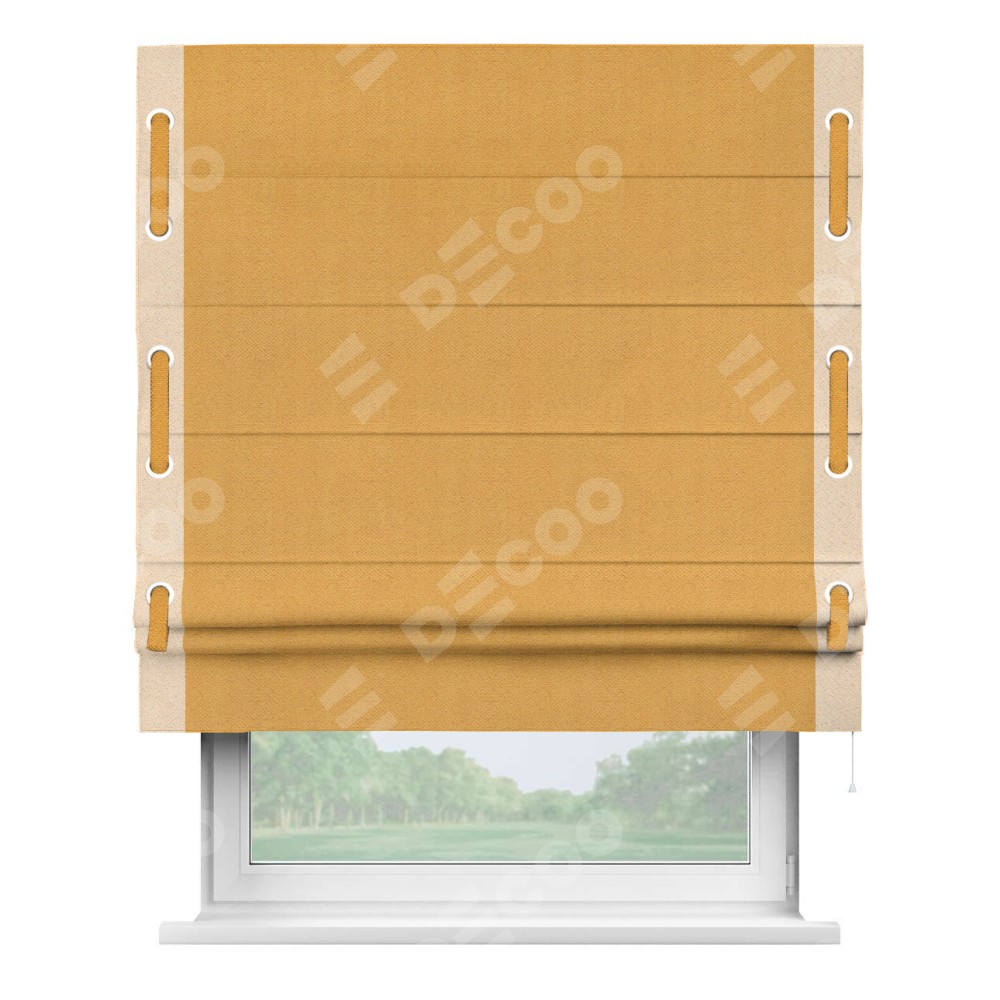 Римская штора «Кортин» с кантом Стрим Дуо (люверсы с пояском), для проема, ткань блэкаут с блеском золотой