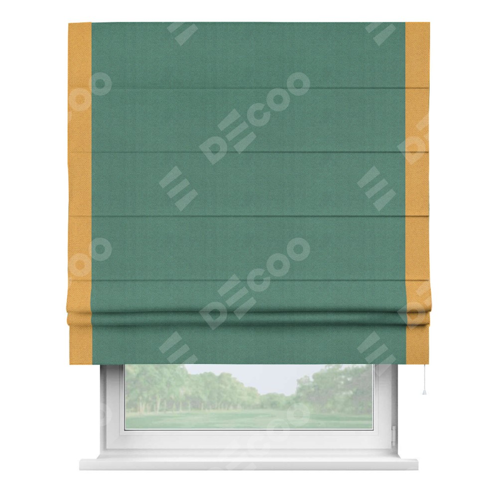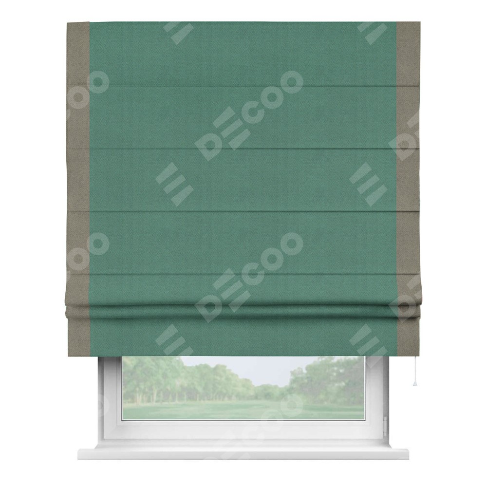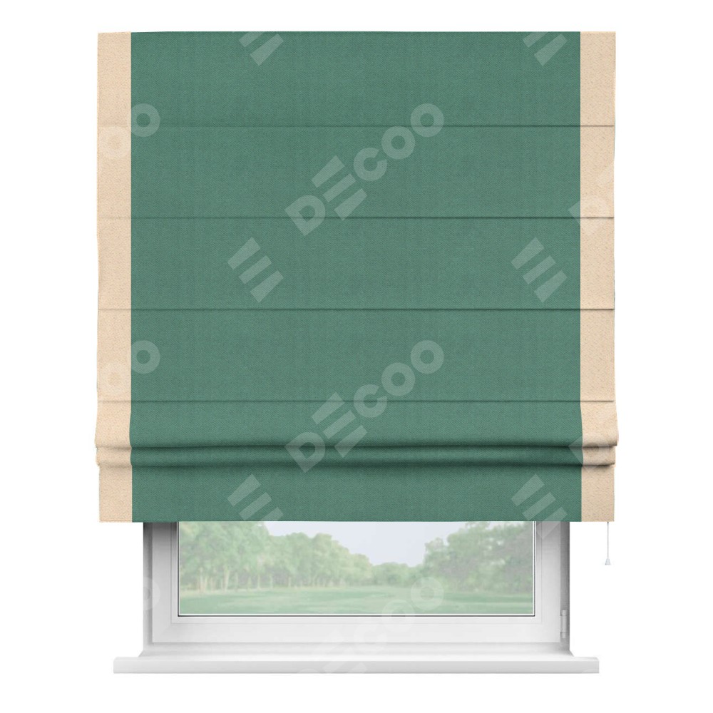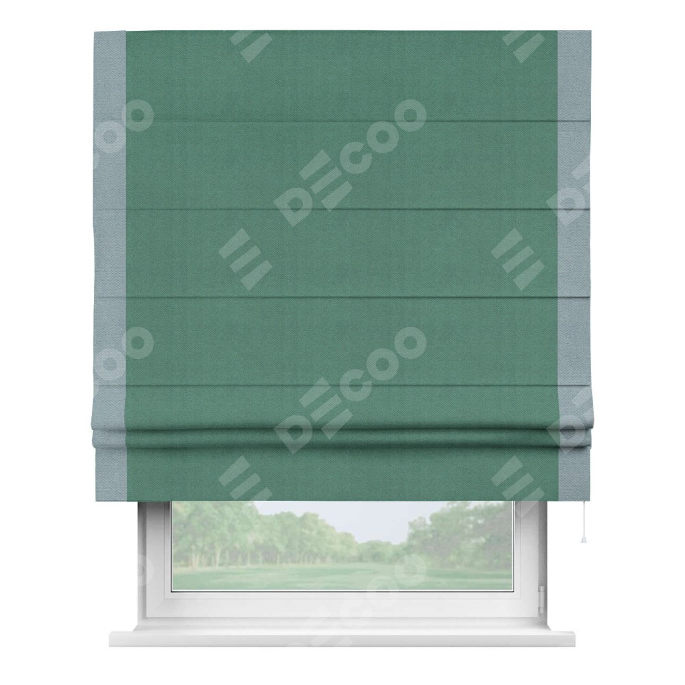 Римская штора «Кортин» с кантом Стрим Дуо, для проема, ткань блэкаут с блеском изумрудный