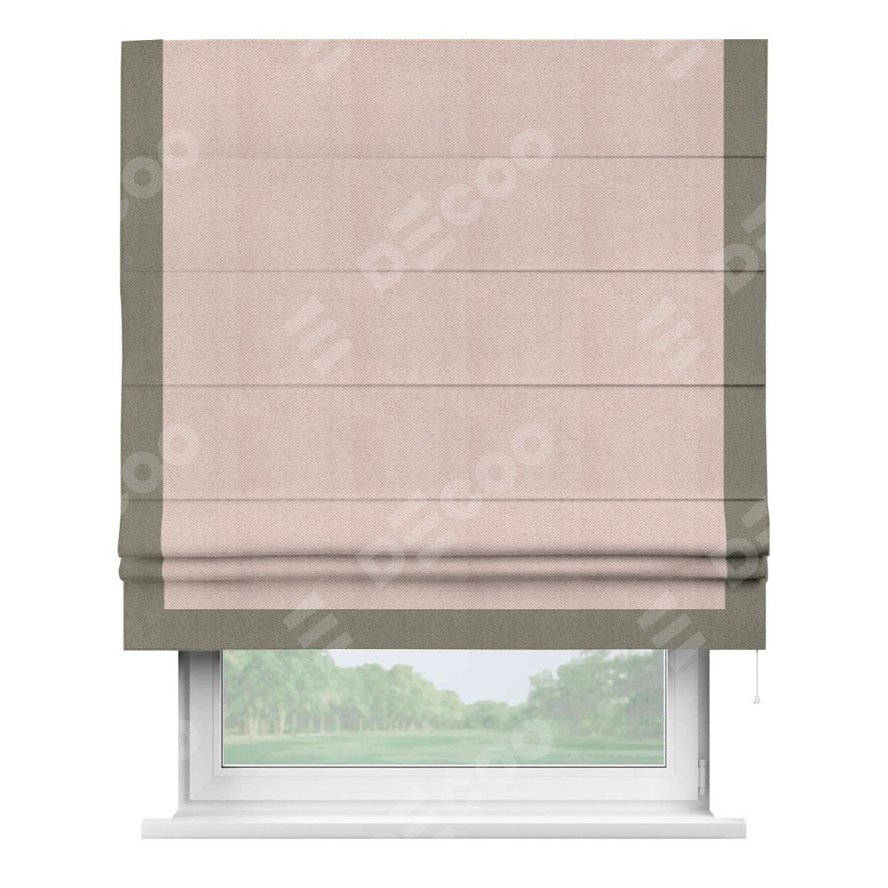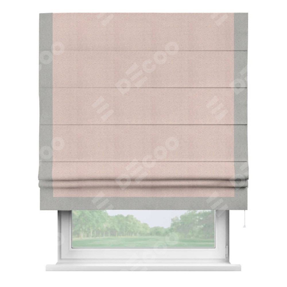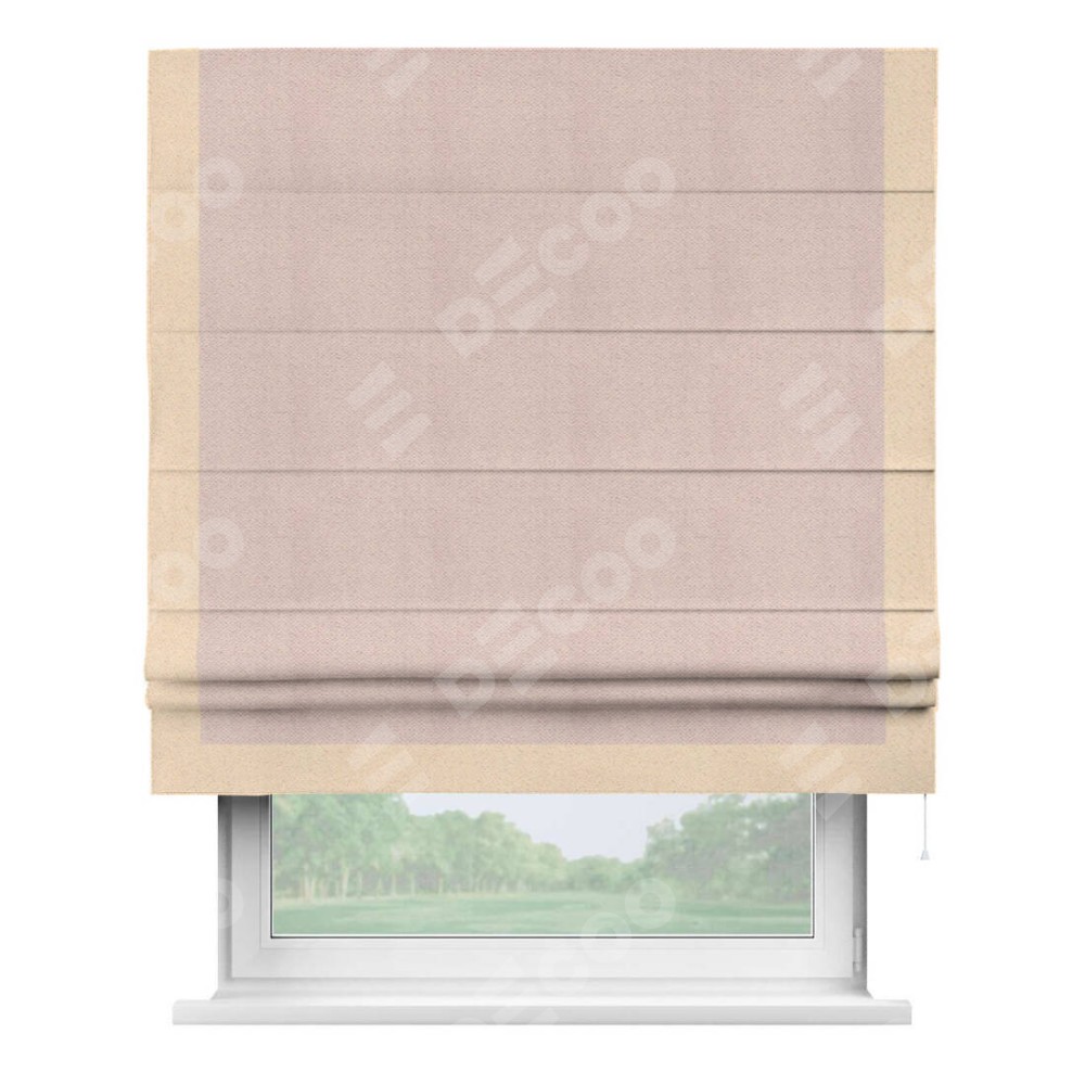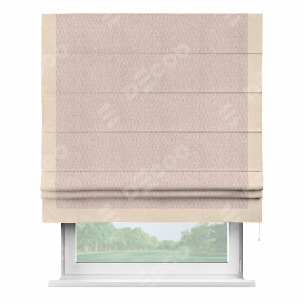 Римская штора производителя «Cortin», используется для проёма, пошита из ткани блэкаут с блеском сиреневый, артикул 34649. Отделка шторы кантом «Виктория», ткань для канта используется из блэкаута с блеском разной расцветки на выбор. Изнаночная сторона материала черного цвета, что обеспечивает необходимую светонепроницаемость. Имеет универсальный механизм и подходит для монтажа: на потолок, на стену и в нишу.