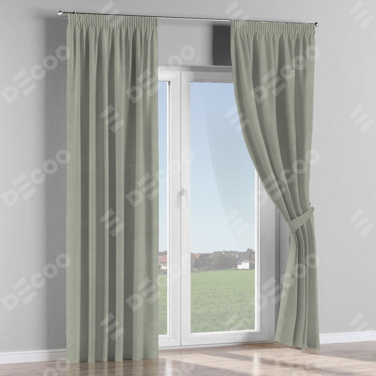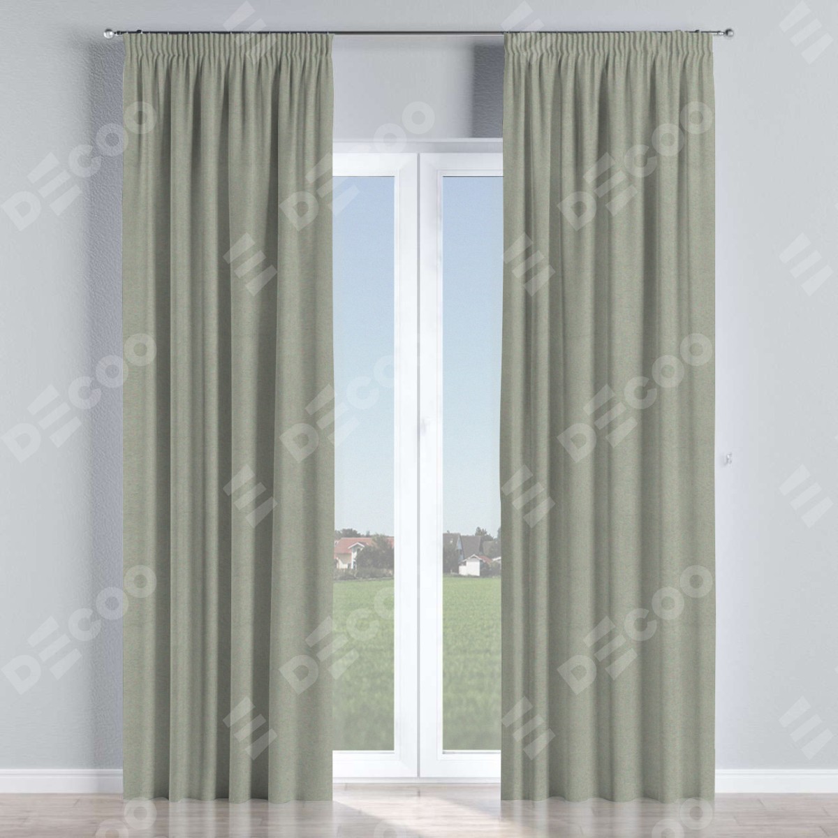 Комплект прямых штор, от производителя «Cortin», пошиты из ткани блэкаут однотонный серый, артикул ткани 88292. С изнаночной стороны в верхней части штор пристрачивается шторная лента с декоративными складками «Карандаш». Для создания элегантных складок прямые шторы шьются по стандарту с коэффициентом 1:2 (на 100 см. ширины проёма 200 см. ширины ткани).