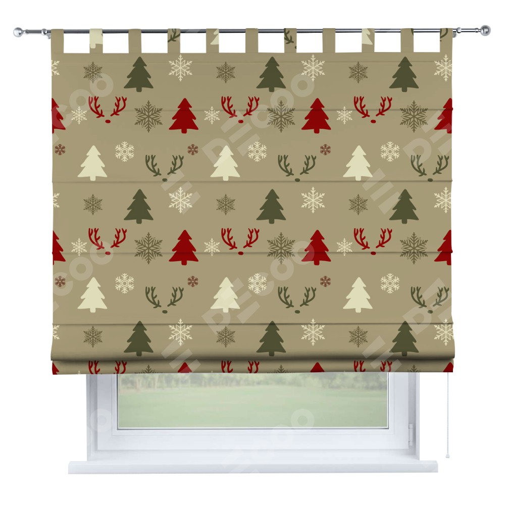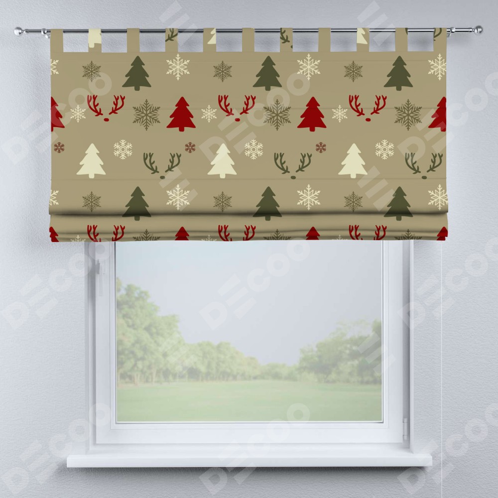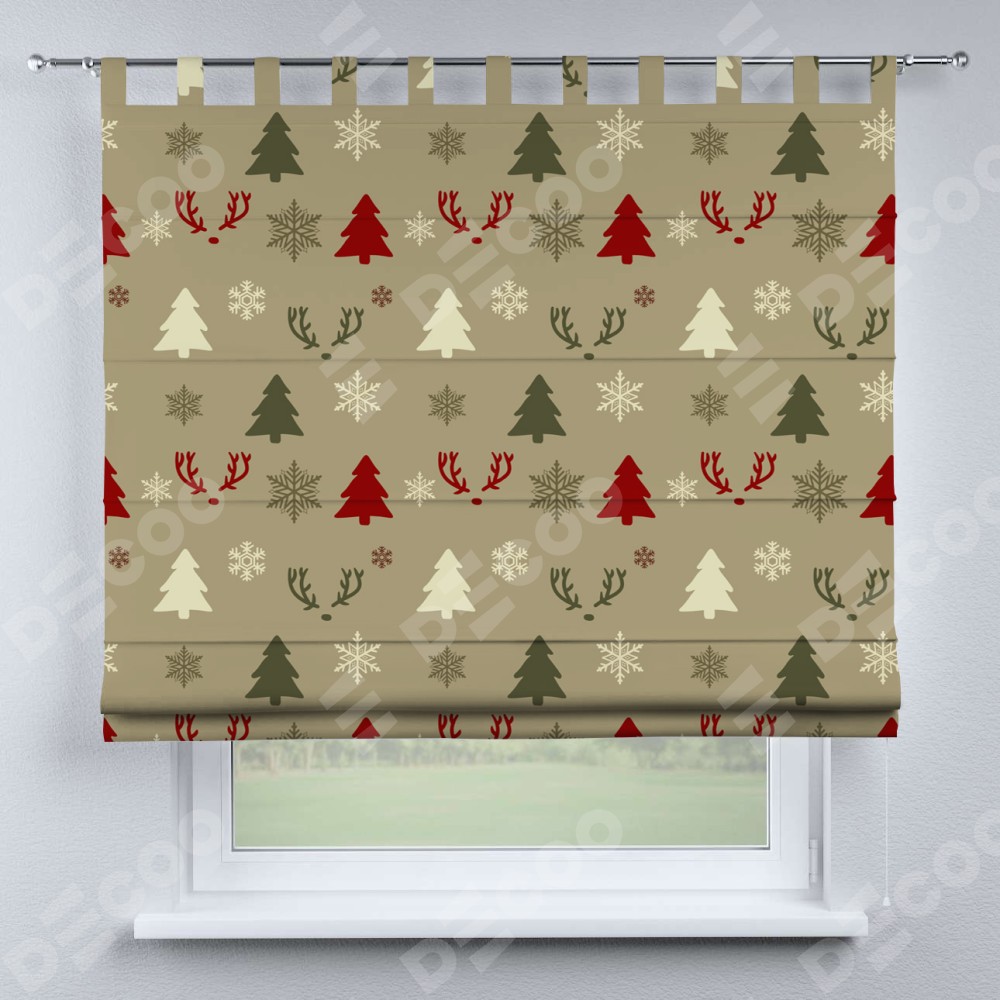 Римская штора производителя «Cortin», используется для проёма, пошита из ткани блэкаут с нанесением сублимационной печати «Гармония рождества». Данная модель пошита на петлях, комплектуется на выбор круглым карнизом и подходит для монтажа на стену. Римская штора на петлях имеет простую систему регулировки высоты, отличительным преимуществом данной модели является простой способ монтажа. Достаточно повесить ее на трубу и штора готова!