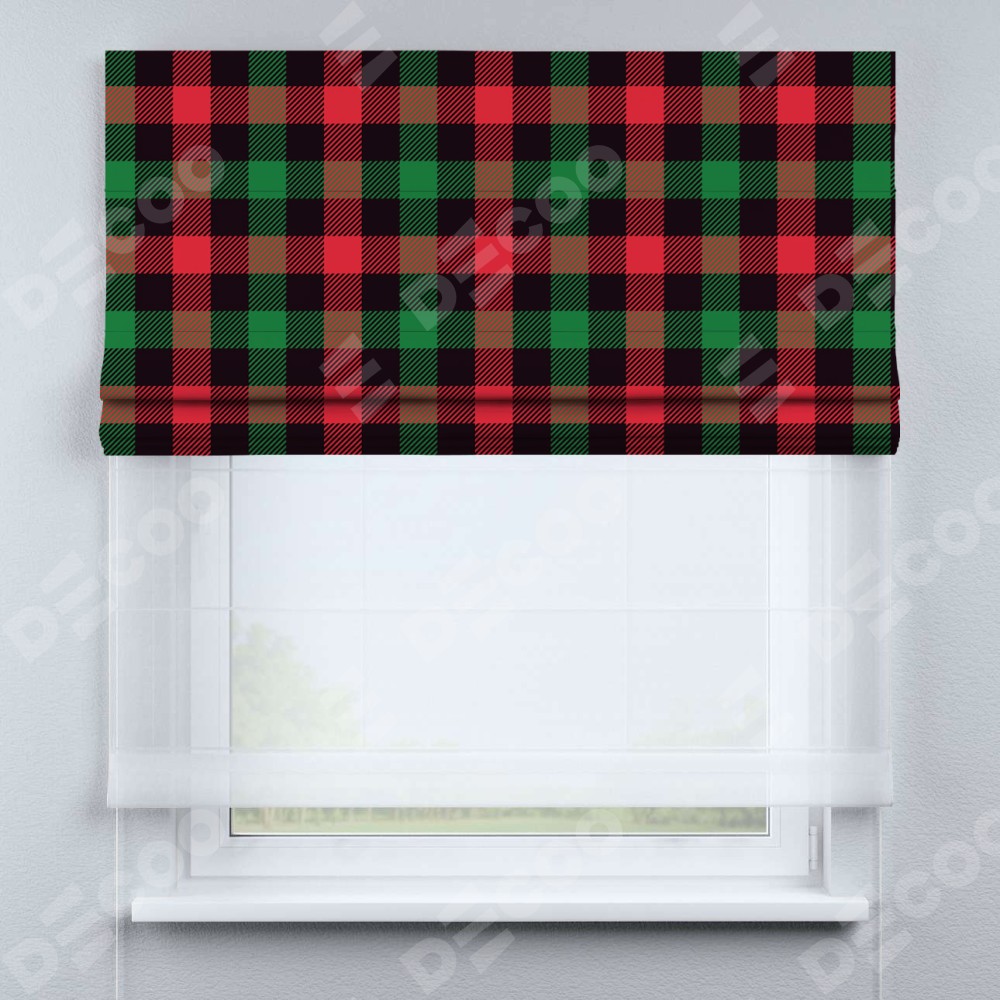 Римская штора день-ночь производителя «Cortin», используется для проёма, пошита из двух полотен, с лицевой блэкаут с нанесением сублимационной печати «Красочная клетка», вторая ткань тюль (по стандарту комплектуется тюль белого цвета артикул V-01). Имеет универсальный механизм и подходит для монтажа: на потолок, на стену и в нишу.