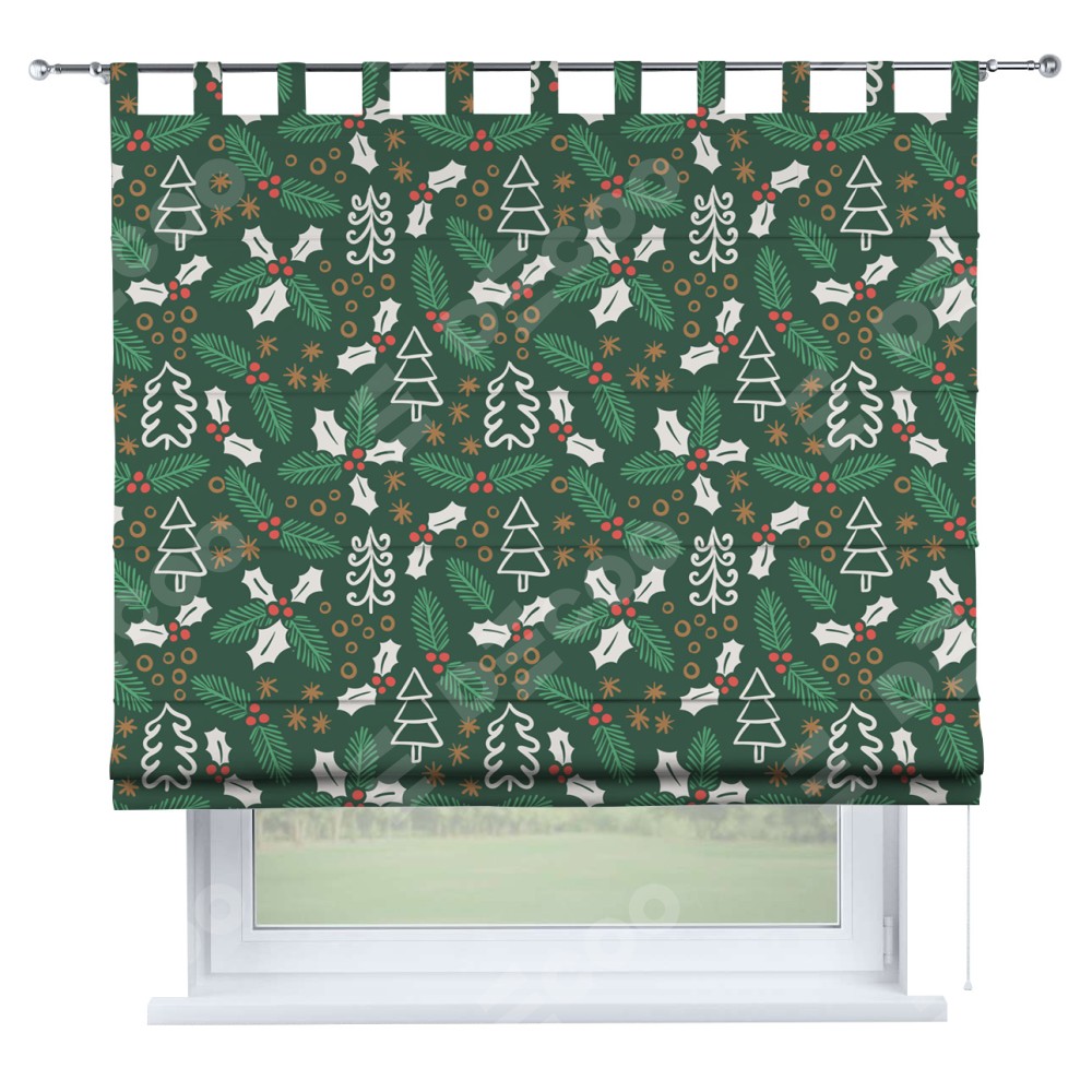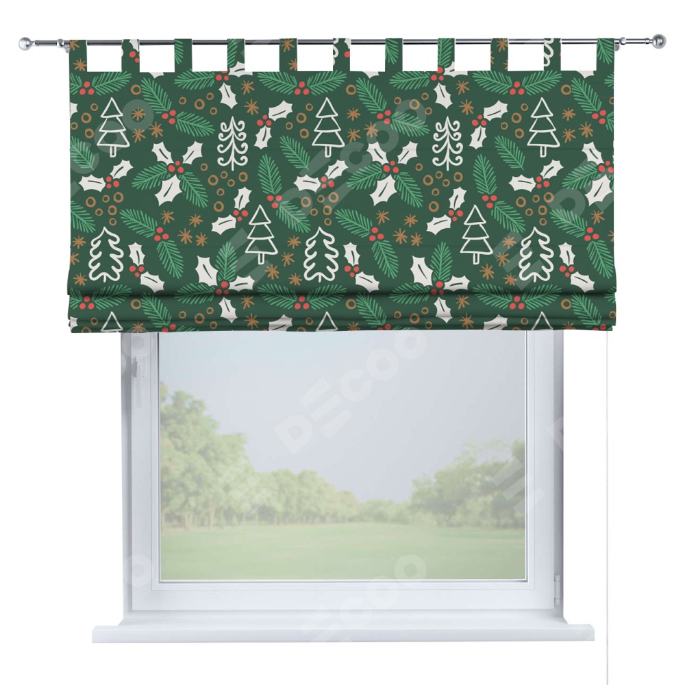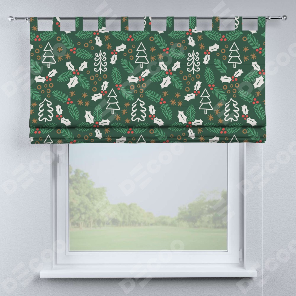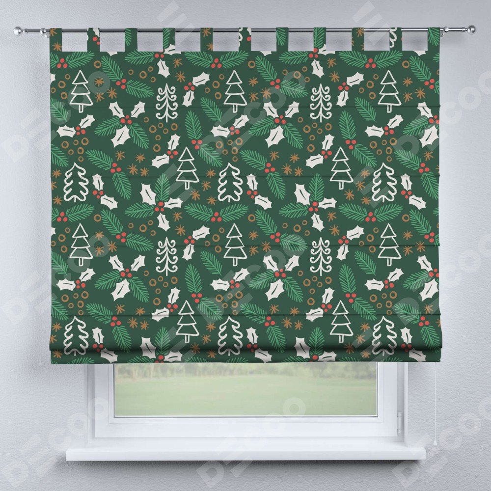 Римская штора производителя «Cortin», используется для проёма, пошита из ткани блэкаут с нанесением сублимационной печати «Рождественский узор». Данная модель пошита на петлях, комплектуется на выбор круглым карнизом и подходит для монтажа на стену. Римская штора на петлях имеет простую систему регулировки высоты, отличительным преимуществом данной модели является простой способ монтажа. Достаточно повесить ее на трубу и штора готова!