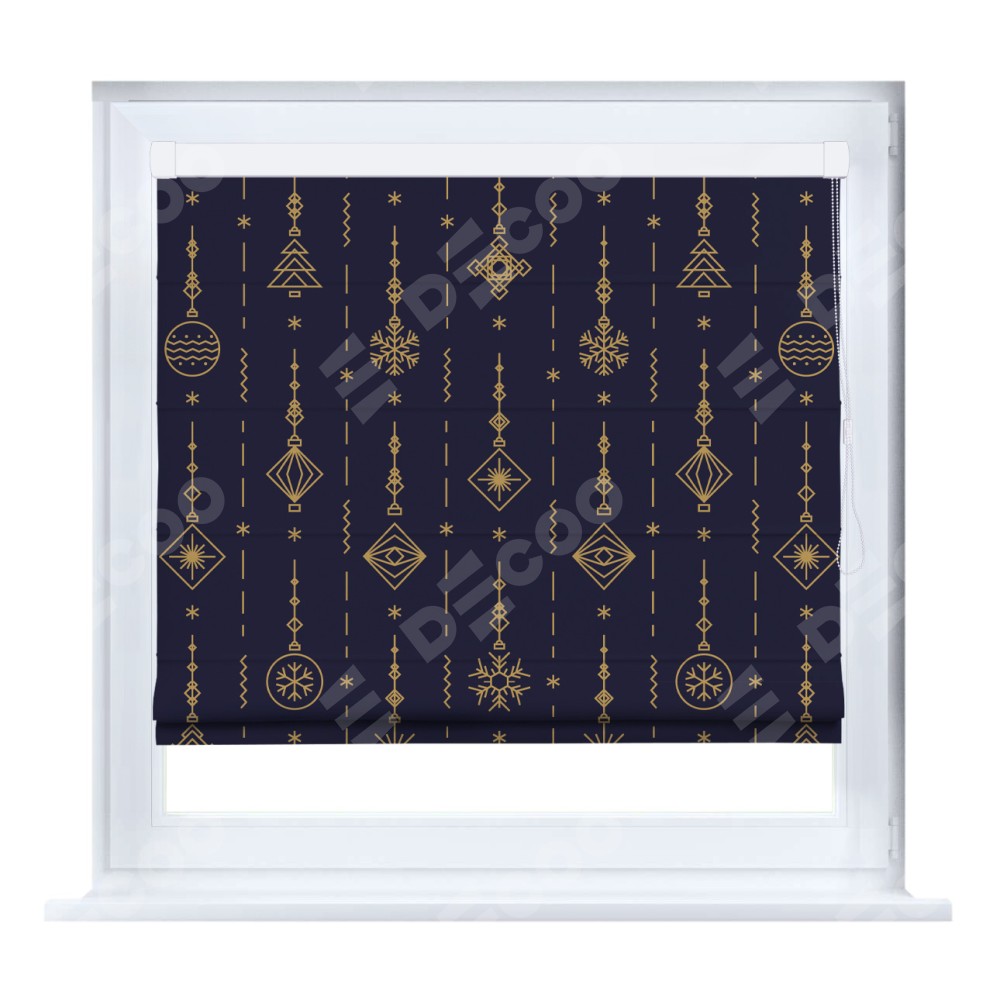 Римская штора производителя «Cortin», устанавливается на створку окна, пошита из ткани блэкаут с нанесением сублимационной печати «Сияние гирлянд». Штора шьётся по индивидуальным размерам, для данного типа римской шторы возможная ширина от 35 до 150 см., высота до 250 см.