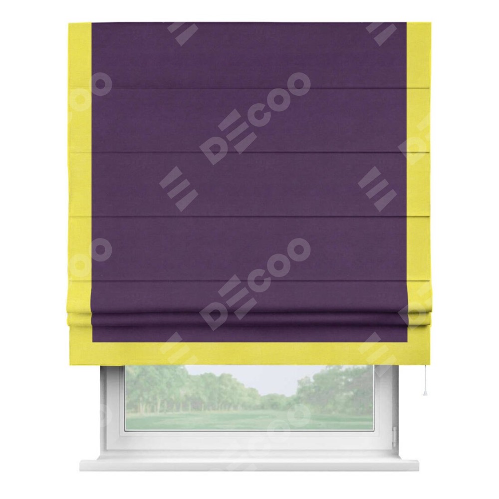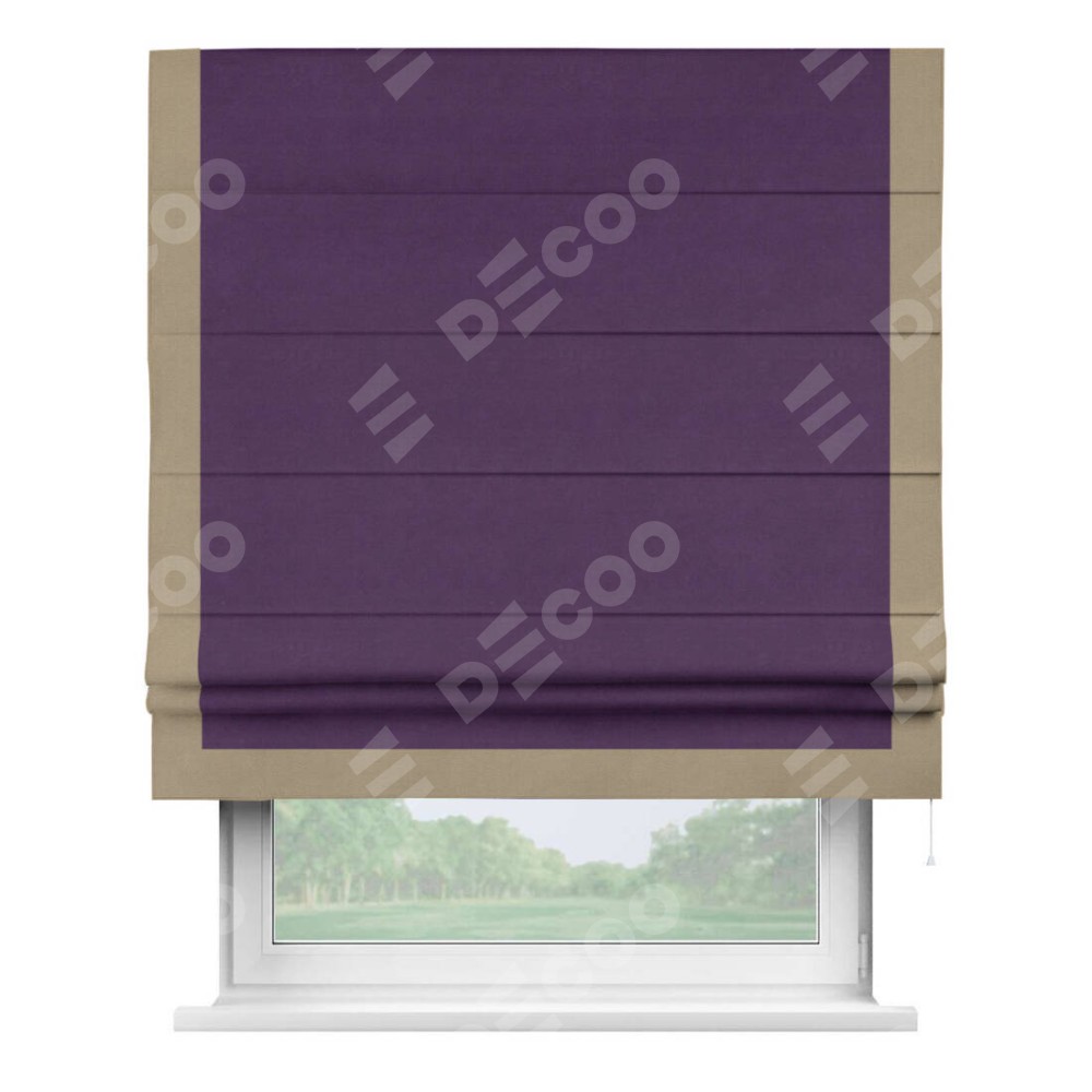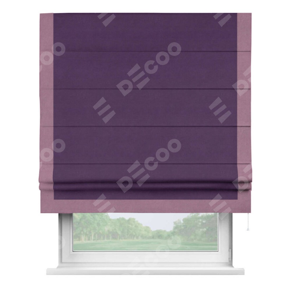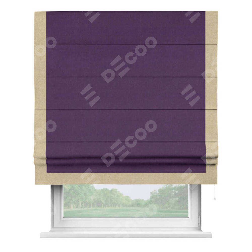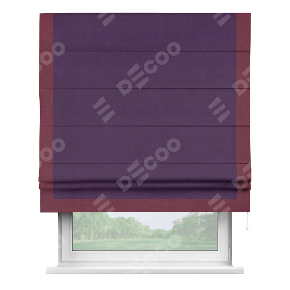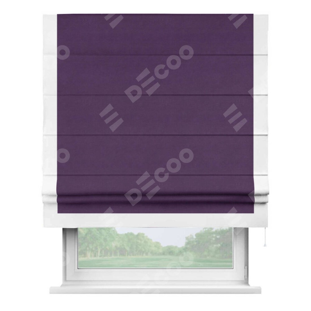 Римская штора производителя «Cortin», используется для проёма, пошита из ткани вельвет темно-фиолетовый, артикул ткани 17753. Отделка шторы кантом «Виктория», ткань для канта используется из вельвета разной расцветки на выбор. Имеет универсальный механизм и подходит для монтажа: на потолок, на стену и в нишу.