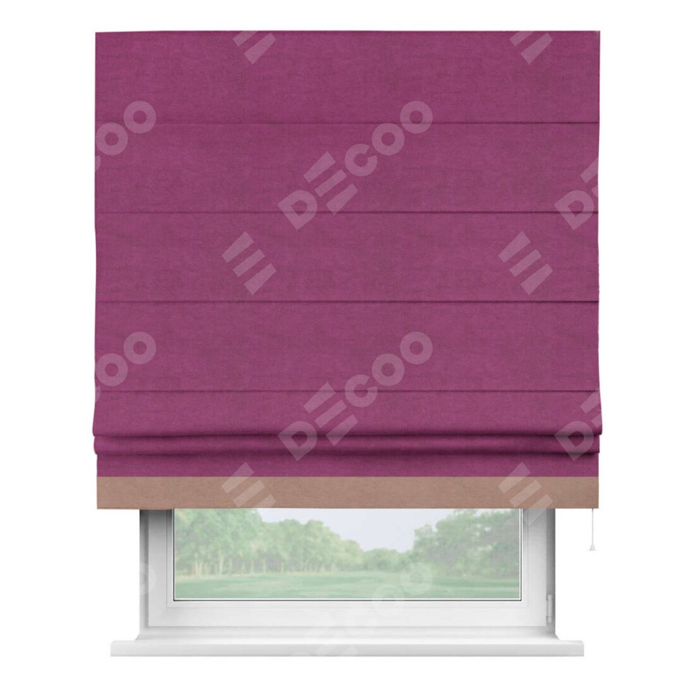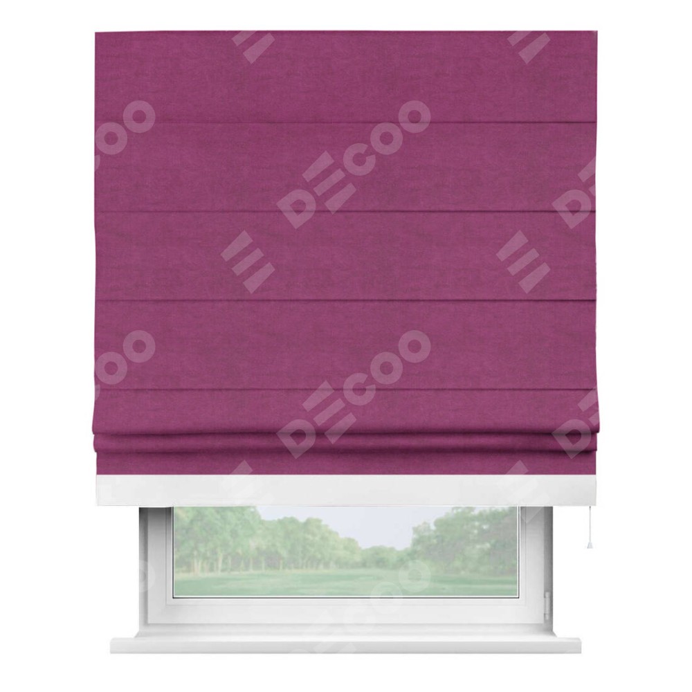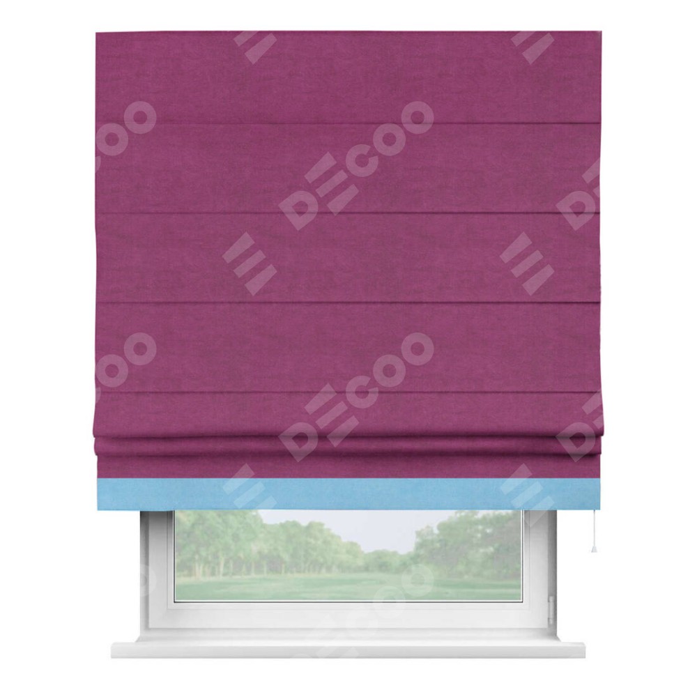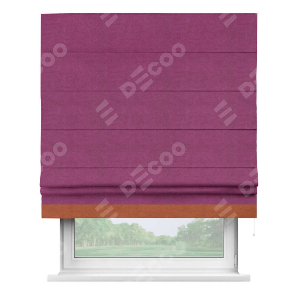 Римская штора «Кортин» с кантом Джестер, для проема, ткань вельвет фиолетовый